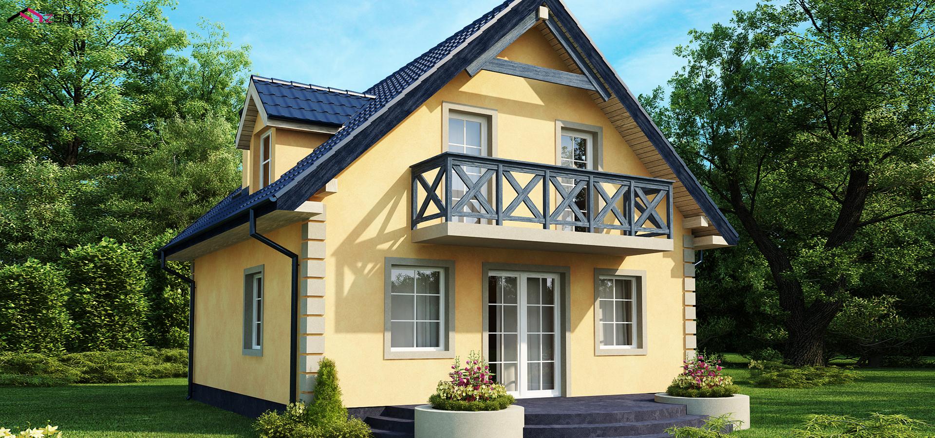 - Простая форма, двускатная крыша, относительно небольшая площадь дома способствуют значительной экономии средств во время строительства и эксплуатации.