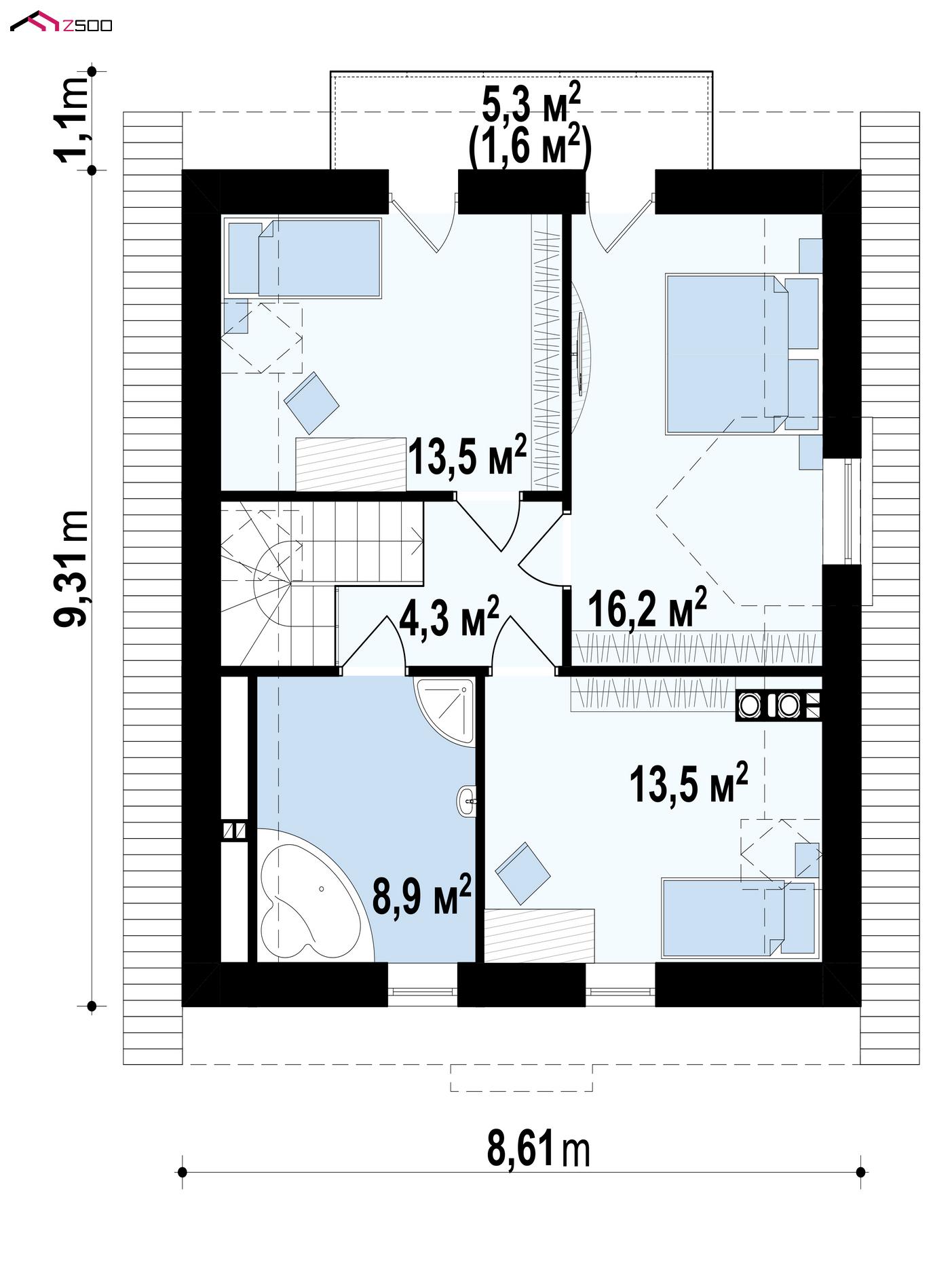 Z1 el – вариант дома с мансардой Z1 с электрическим котлом.