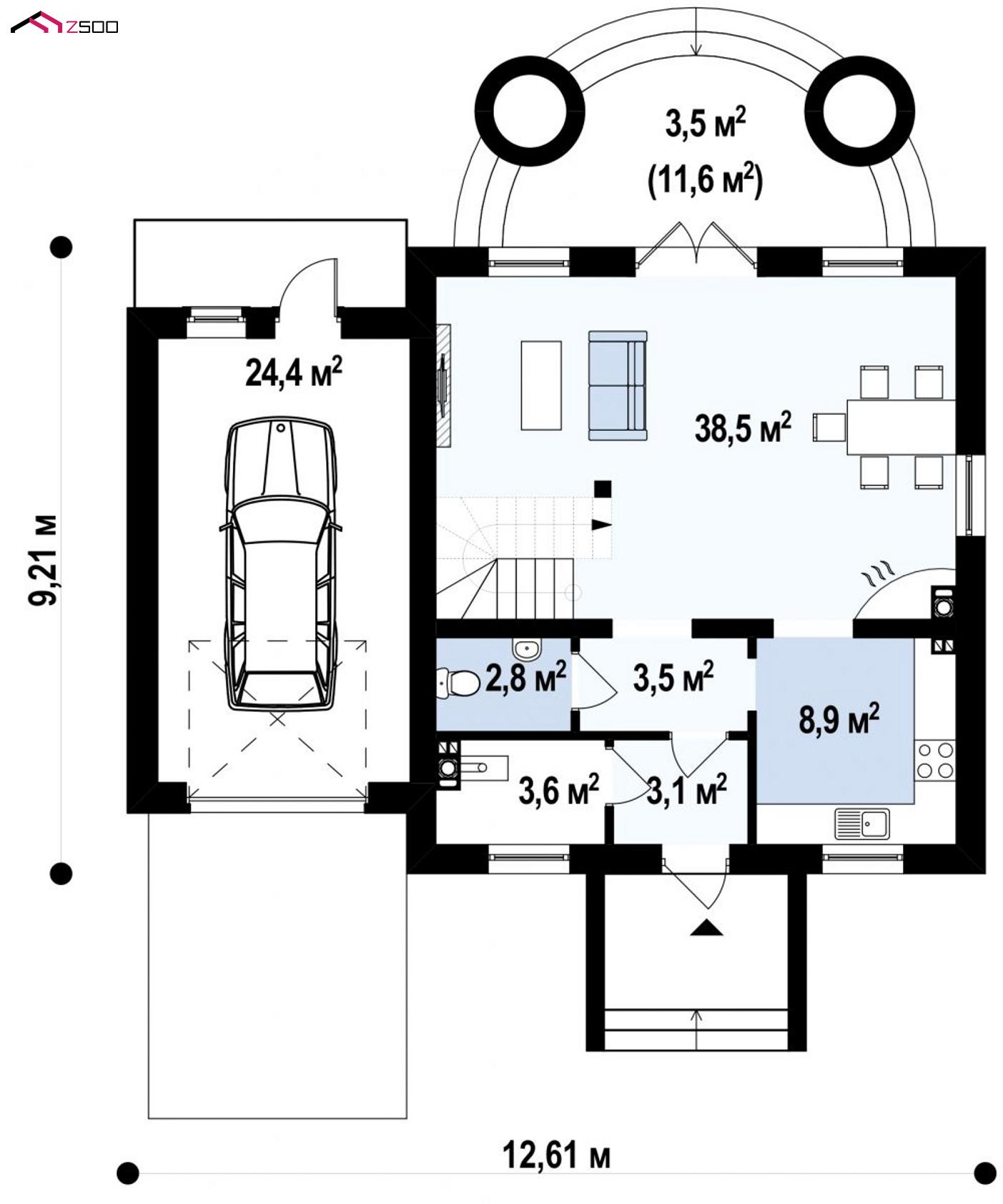 Z1 GL – версия проекта Z1 с гаражом на одну машину.