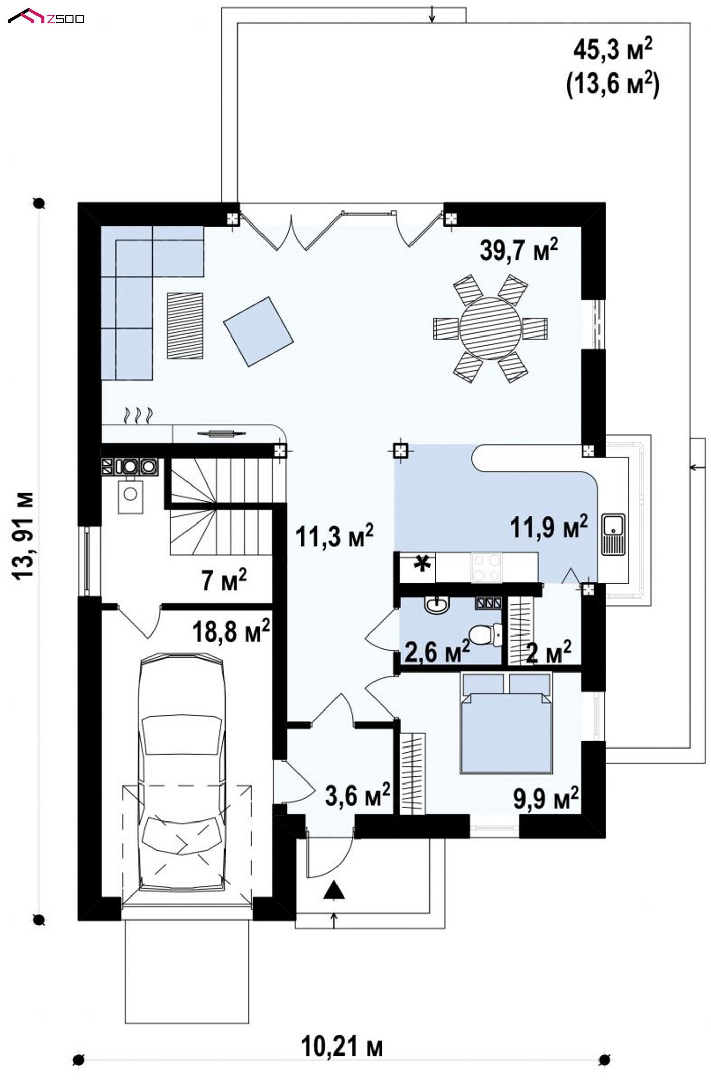| Гостиная+ столовая | 39.7 ㎡ |