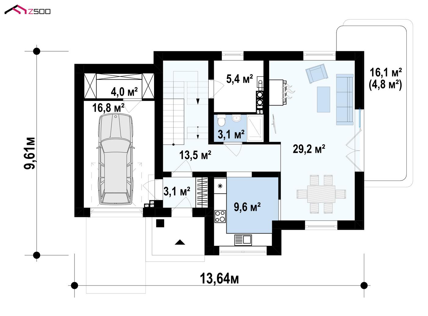за гаражом удобно для хранения любой хозяйственной и садовой техники. - Прямой переход из гаража в дом упростит