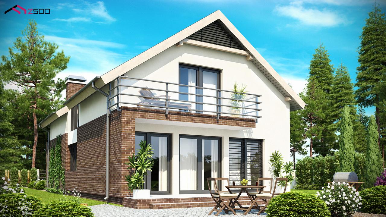 Дом в традиционном стиле с мансардой, со встроенным гаражом, подходящий для узкого участка.