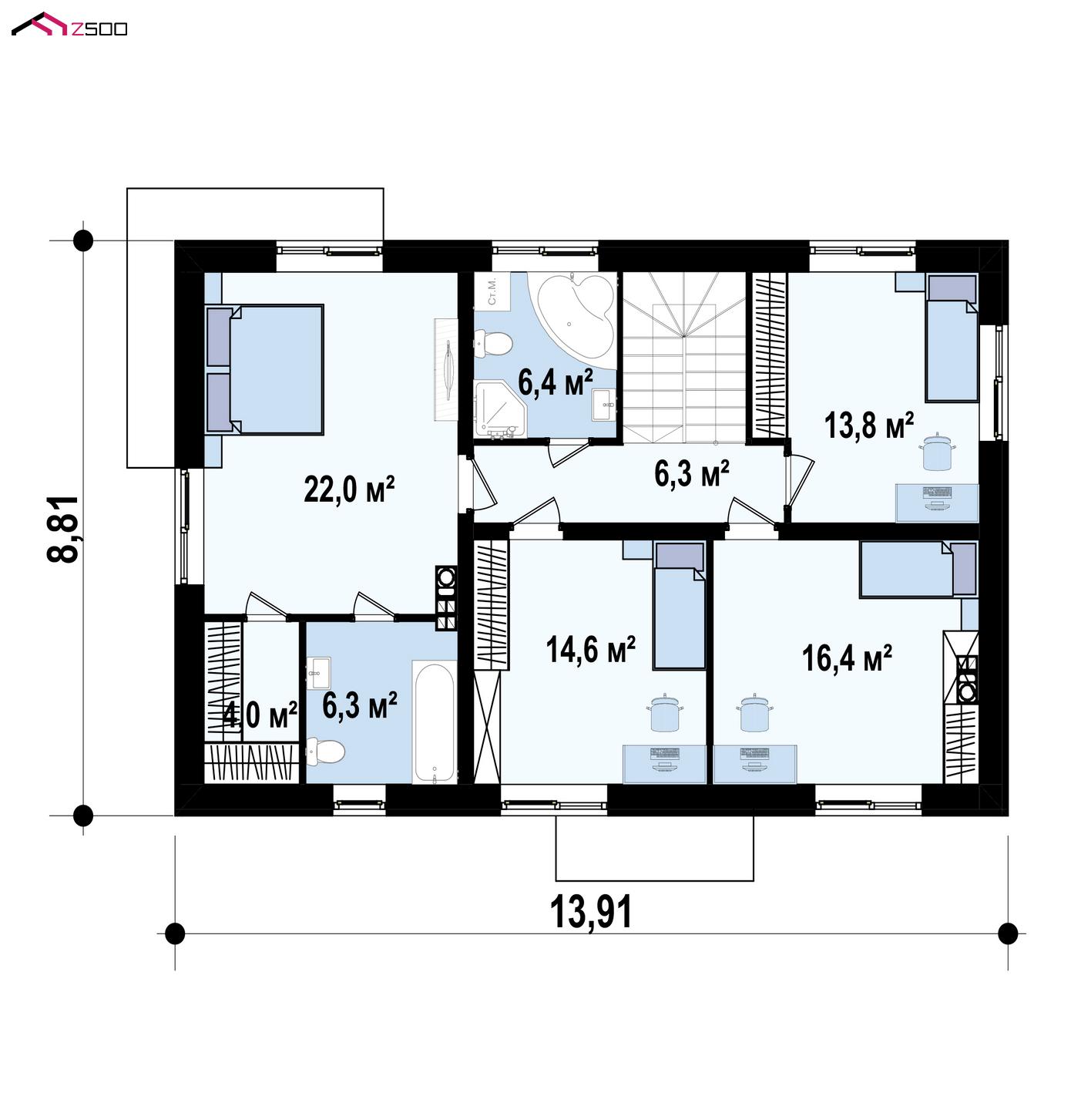 | Спальня | 22 ㎡ |