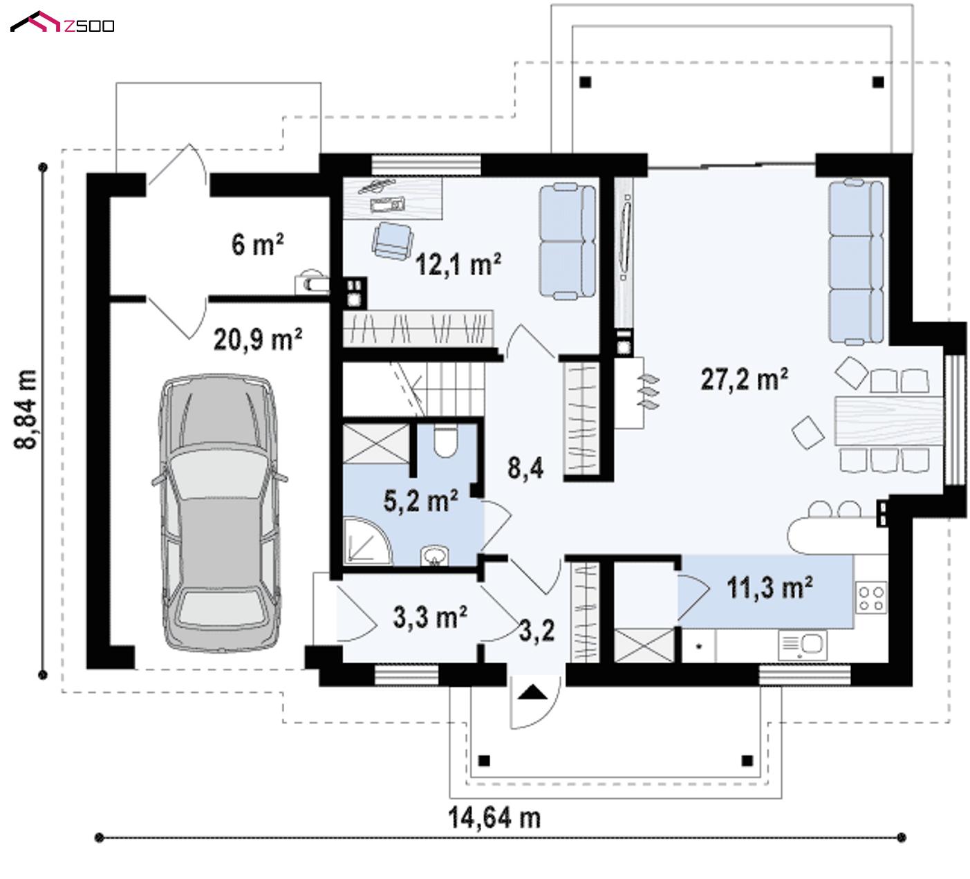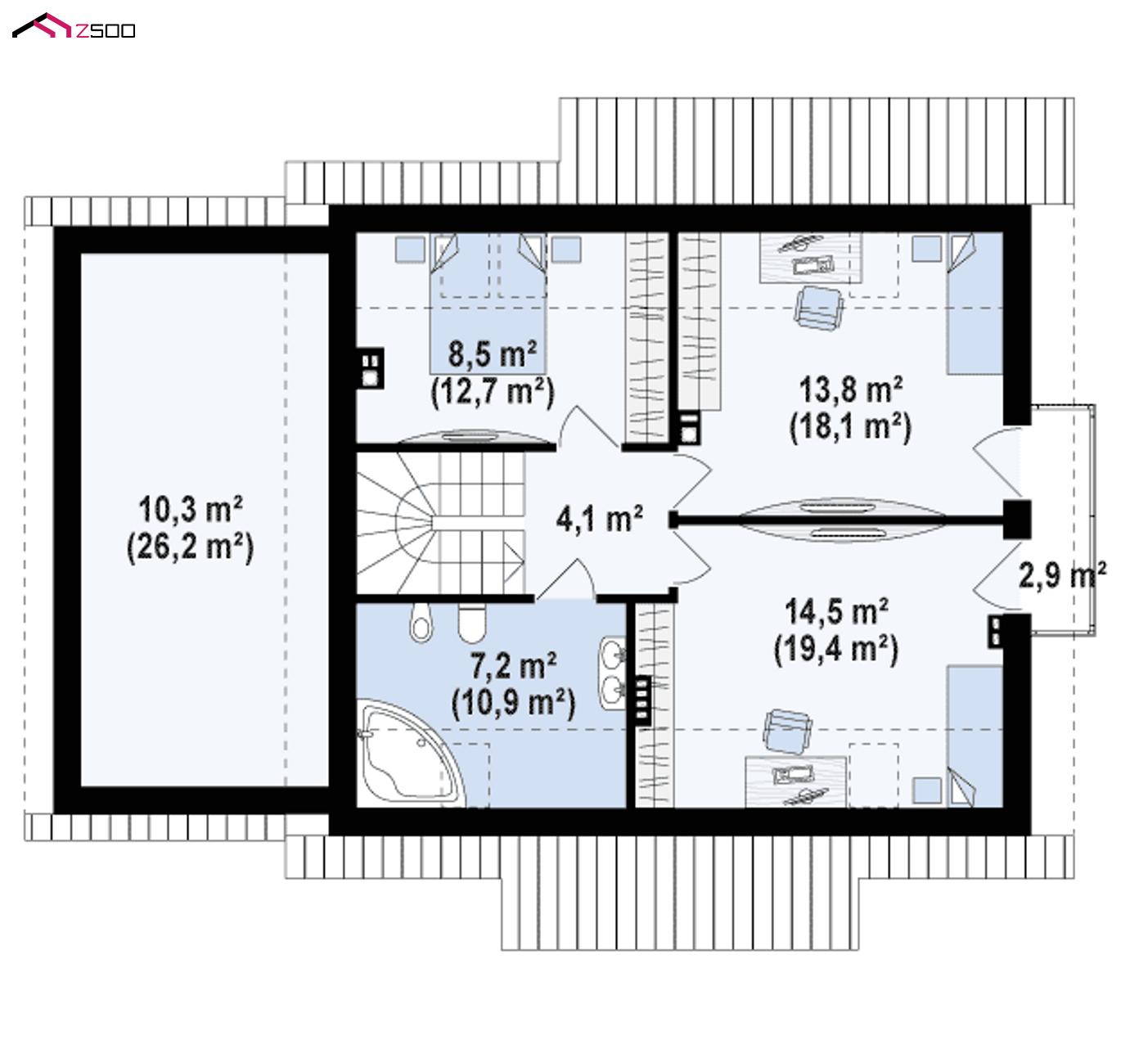 Проект дома Z162 GLv2 – идеальное решение для тех, кто мечтает о компактном уютном доме с мансардой. Наличие 4 комнат делает дом комфортным для проживания семьи из 4-5 человек.