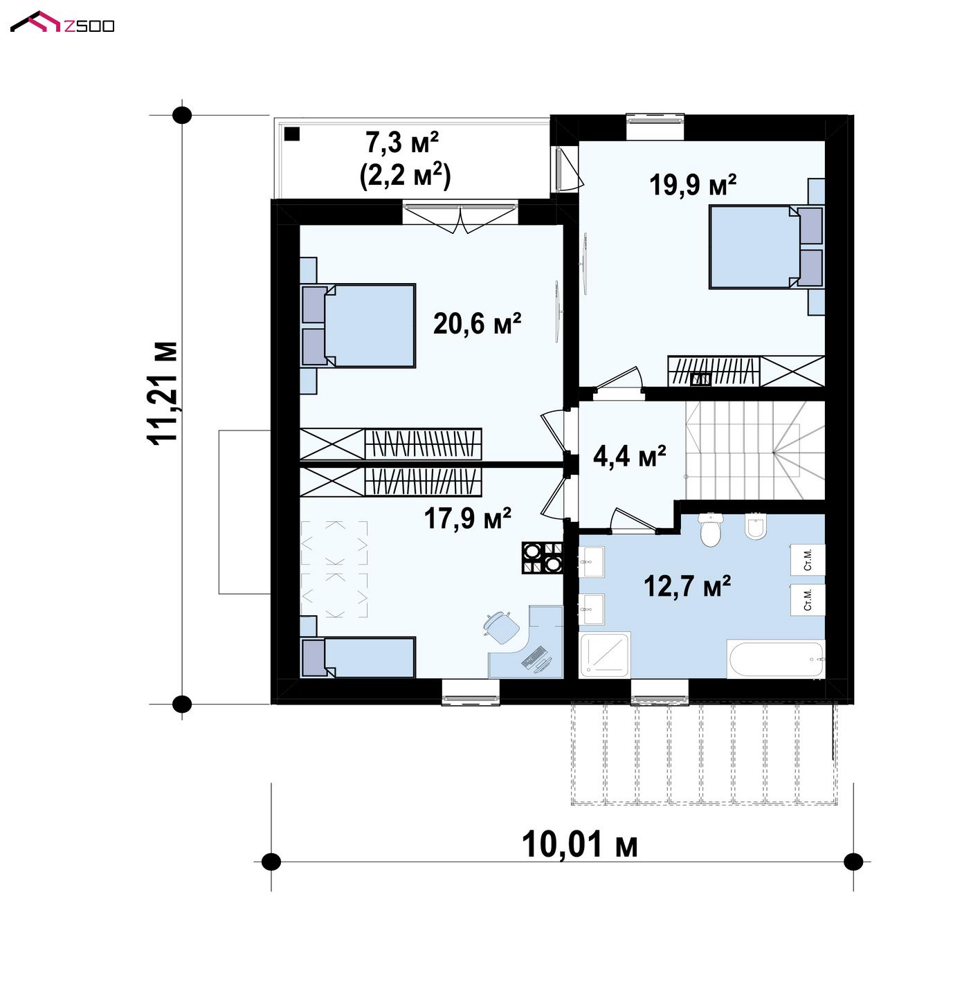 Проект Z166 PK предназначен для большой семьи, членам которой важен комфорт и просторные помещения с хорошим освещением.