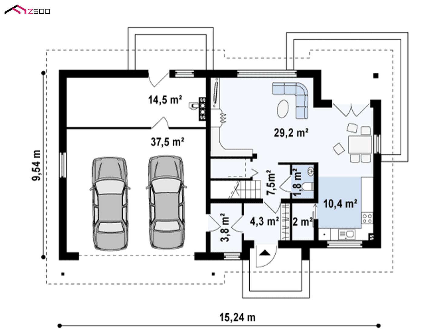 Вариант типового проекта Z172 c добавленным гаражом для двух машин