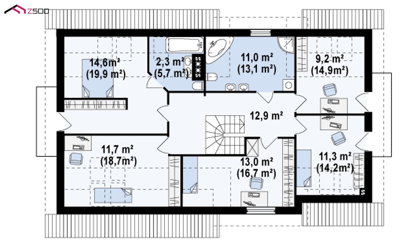 Z172 GL2 представляет собой вариант типового проекта Z172 c добавленным гаражом для двух машин.