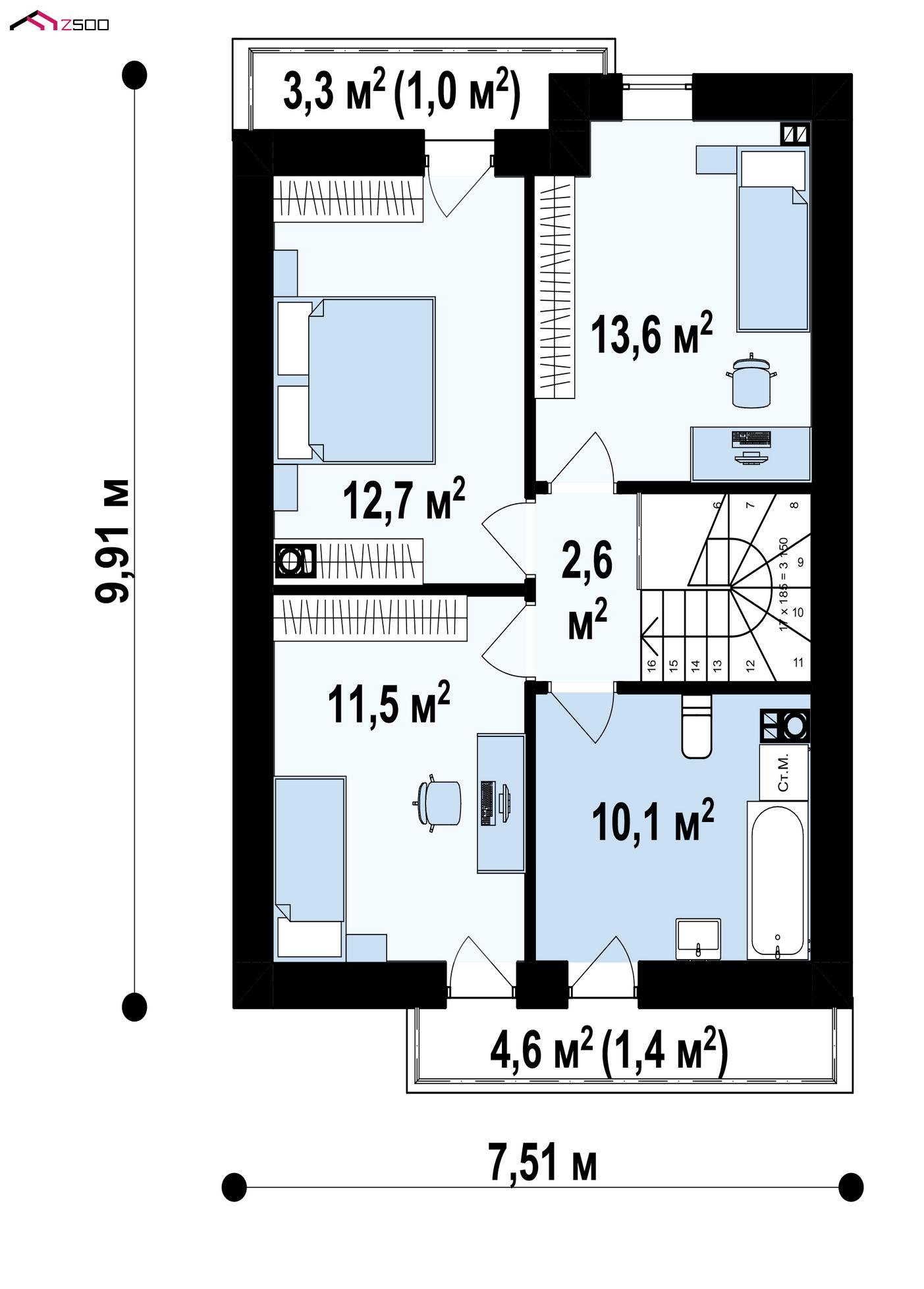 Z174 — проект компактного и удобного дома в традиционном стиле, подходящий для строительства на узком участке.