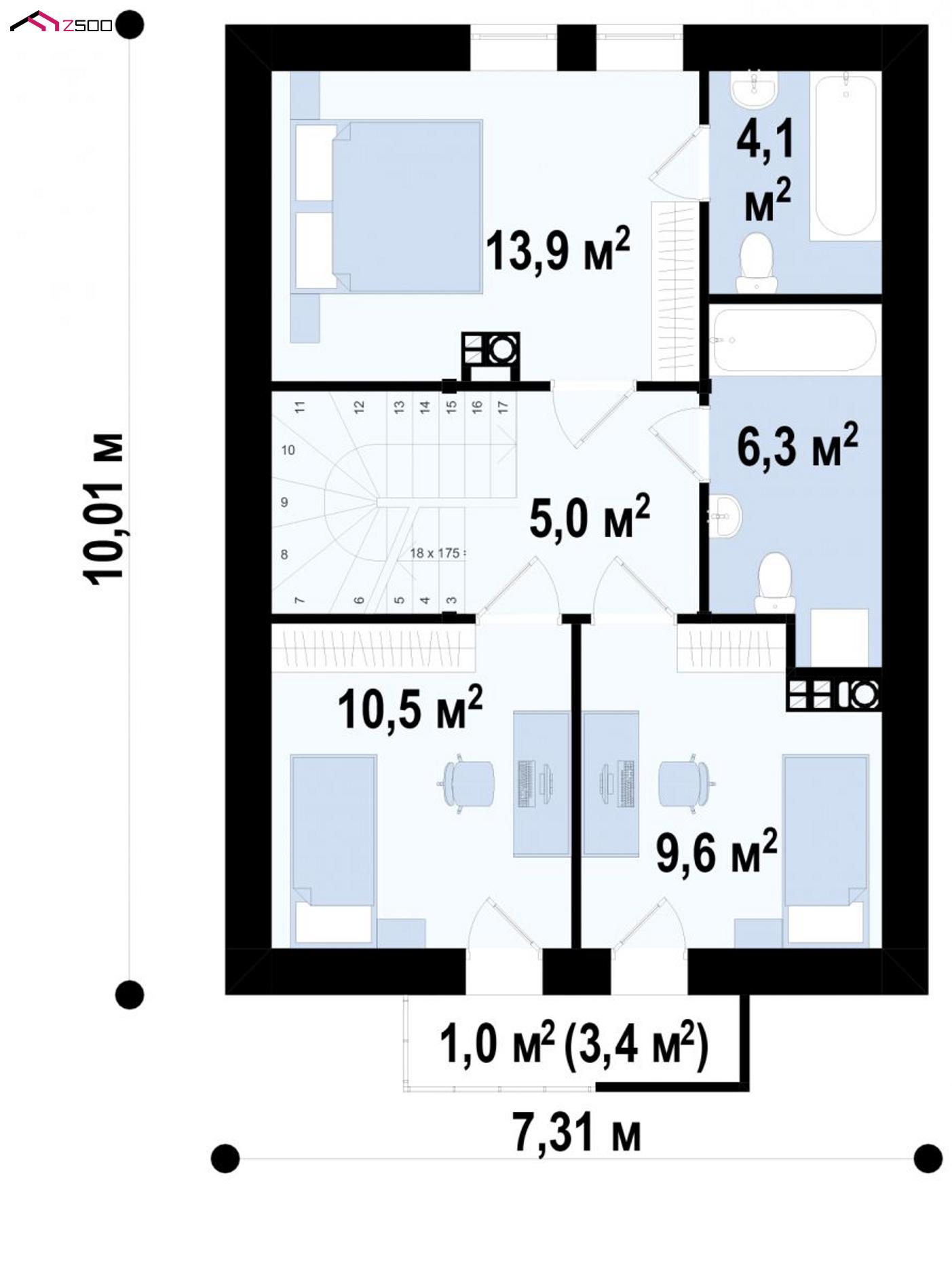 Z177 — аккуратный и практичный дом, подходящий, также, для узкого участка.
