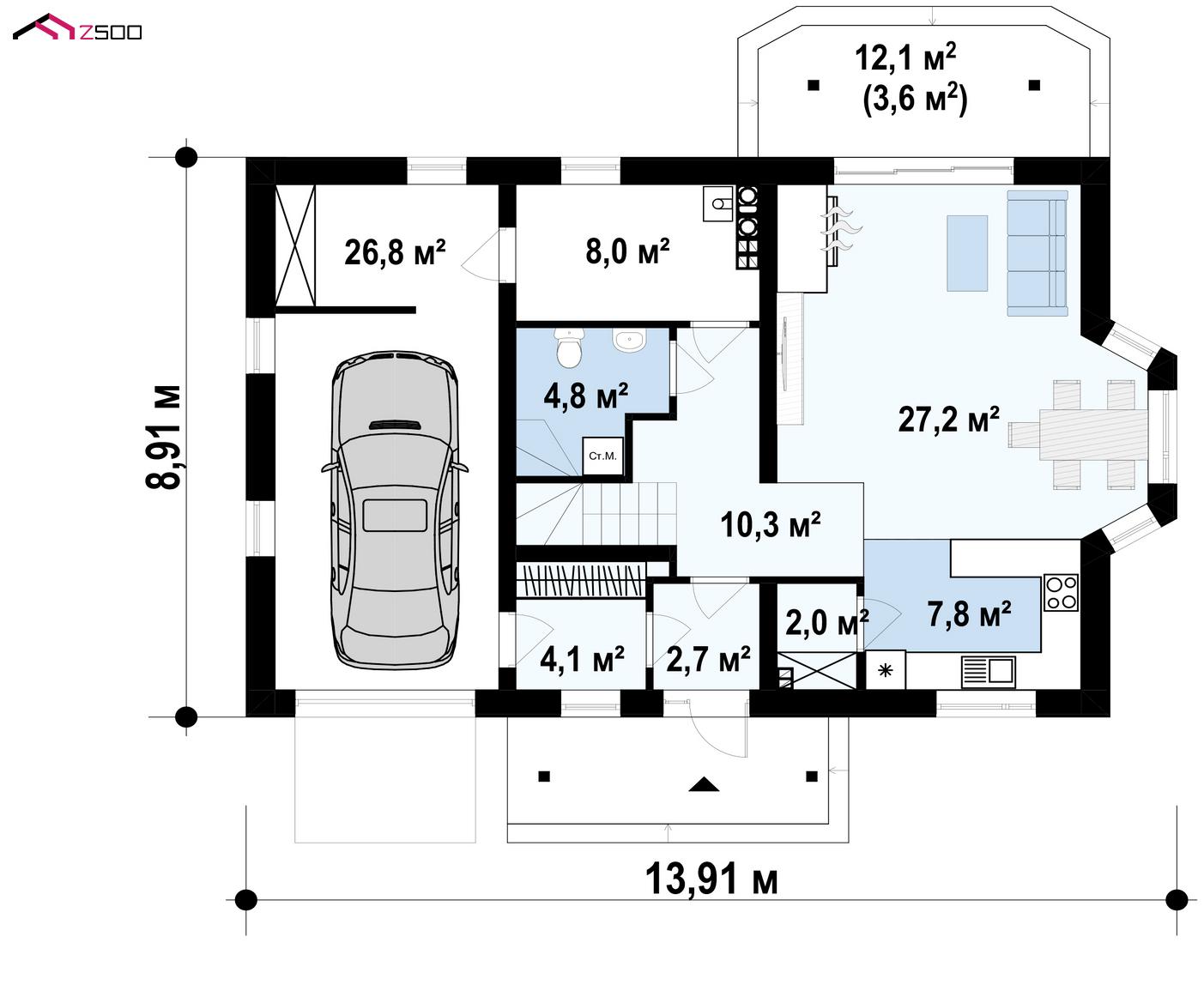 сторон обеспечивает хорошее естественное освещение дневной зоны.