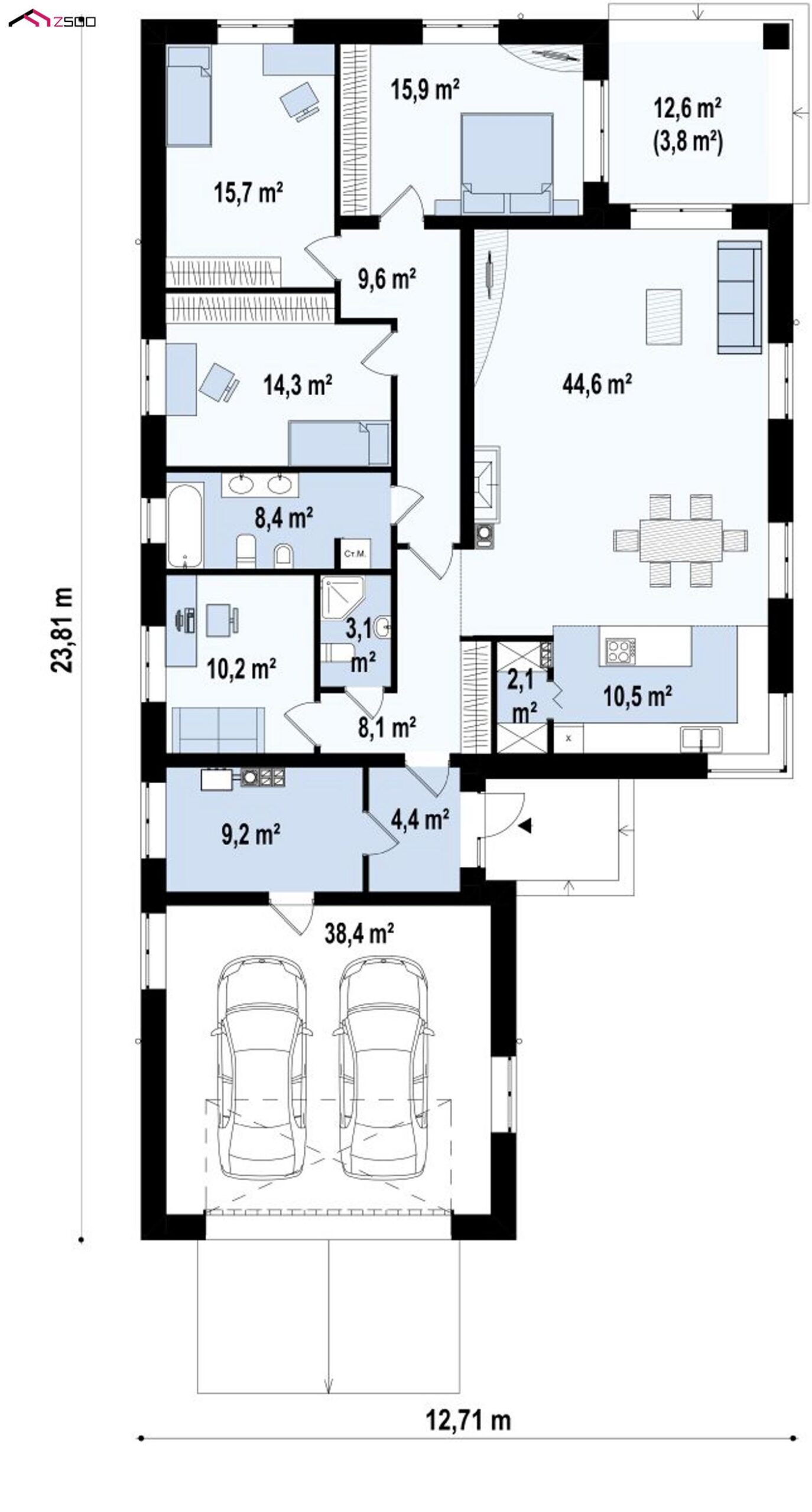 Версия Z195 с гаражом для двух автомобилей