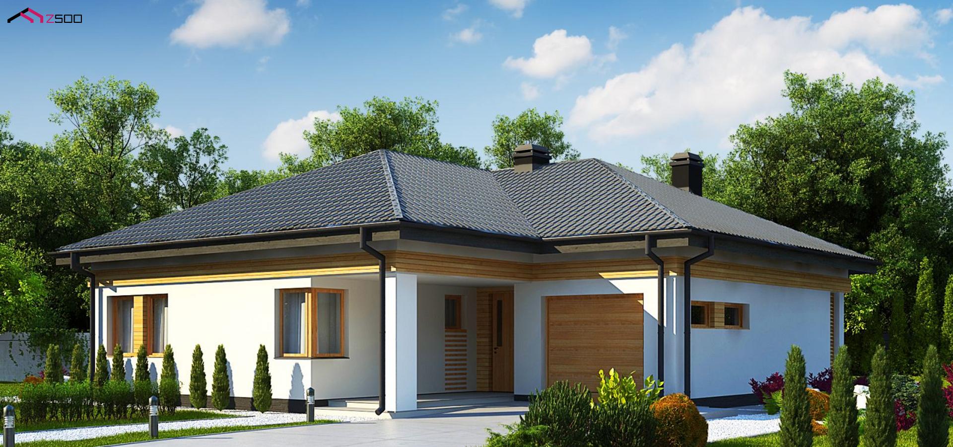 проекта одноэтажного дома Z204 с гаражом для одной машины.