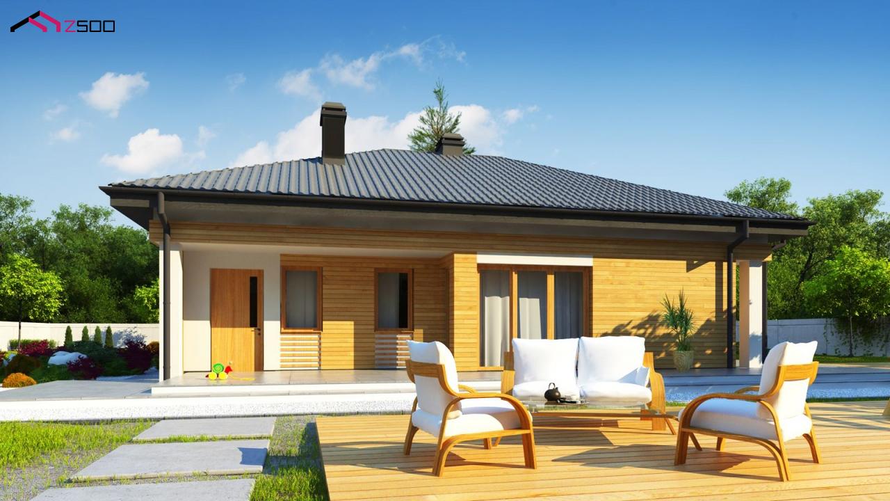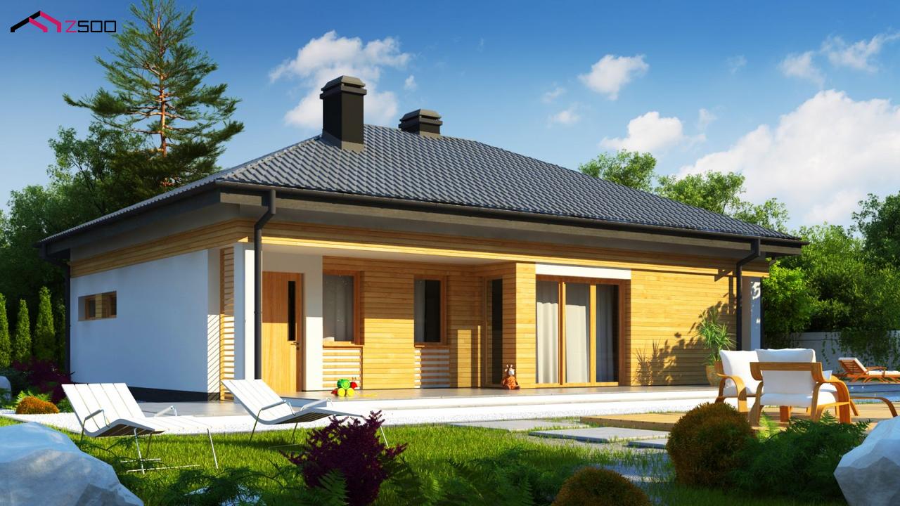 проекта одноэтажного дома Z204 с гаражом для одной машины.