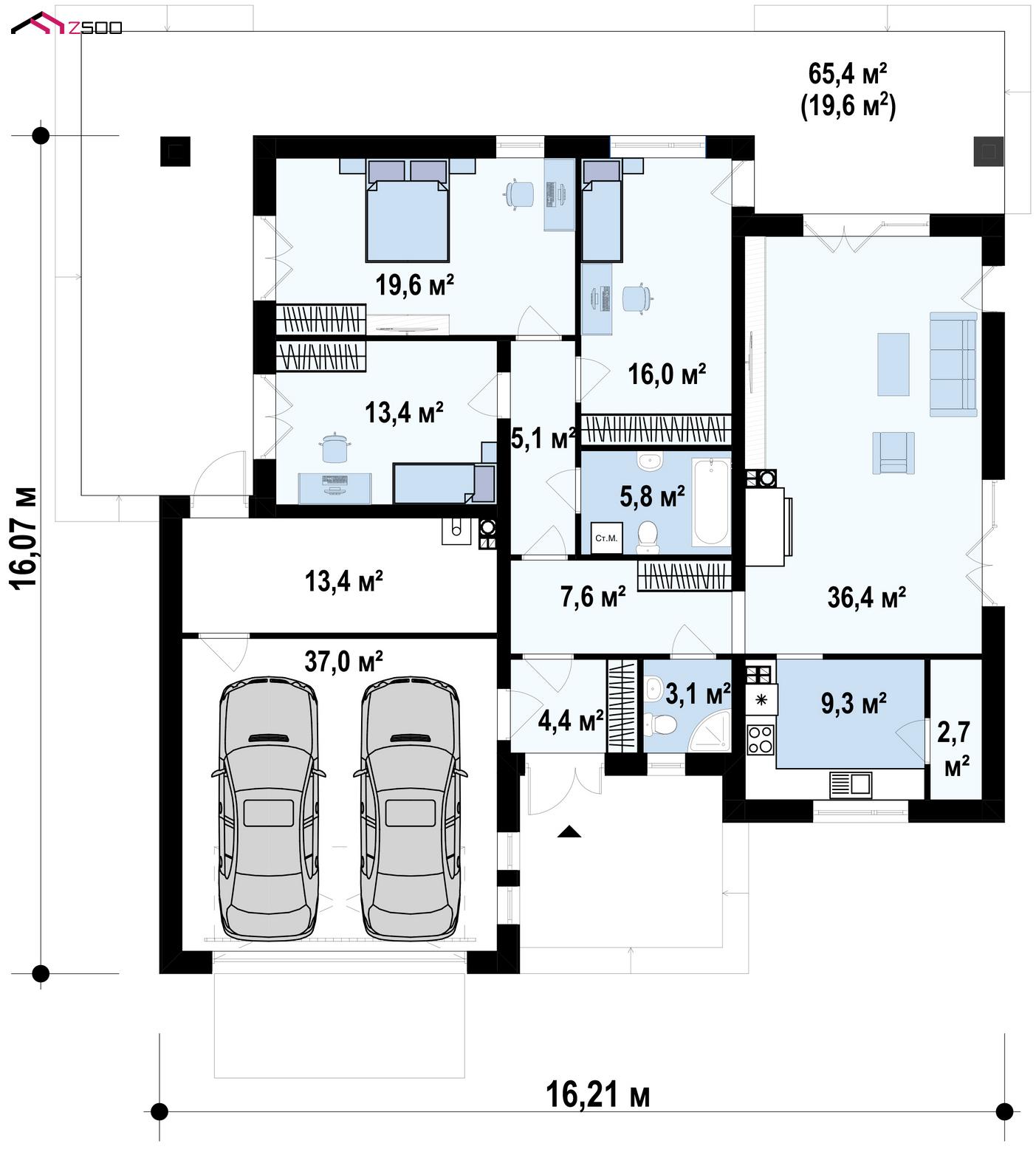 | Гараж | 37 ㎡ |