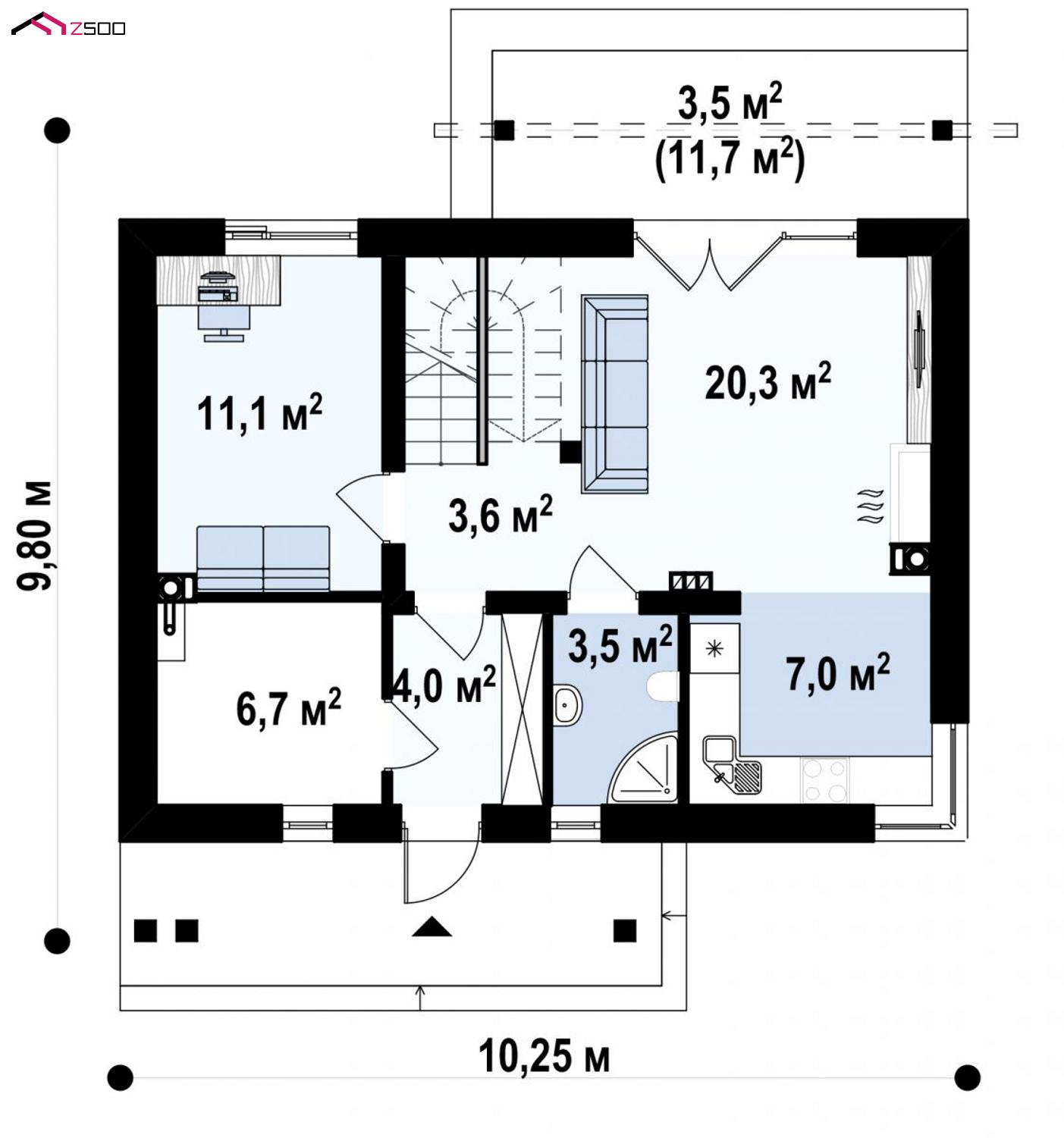 Проект Z210v1– несмотря на компактные параметры строения все помещения в нем просторны и комфортны.