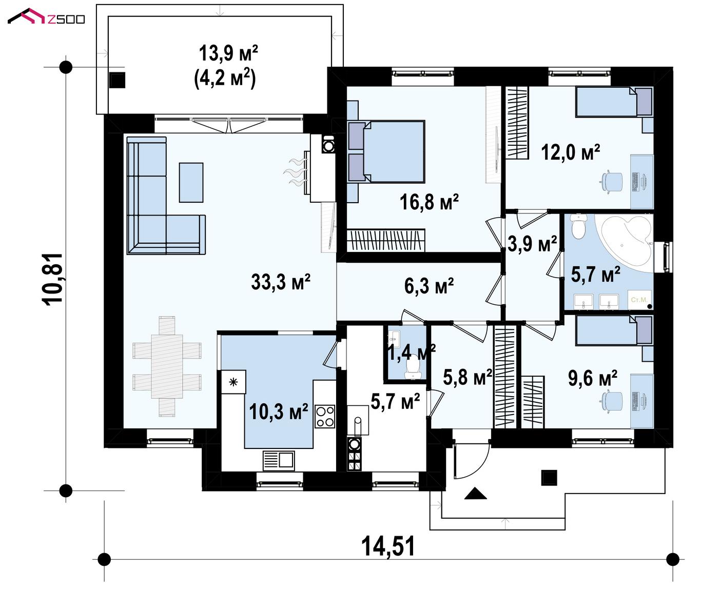 | Площадь дома | 110.9 м² |