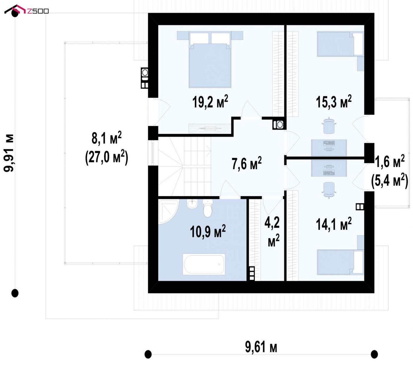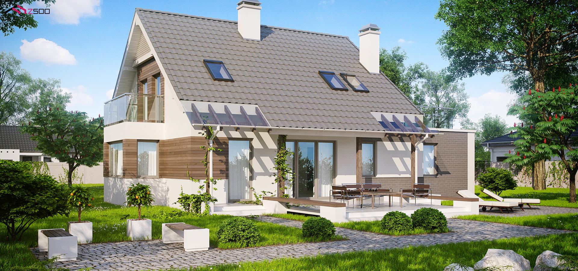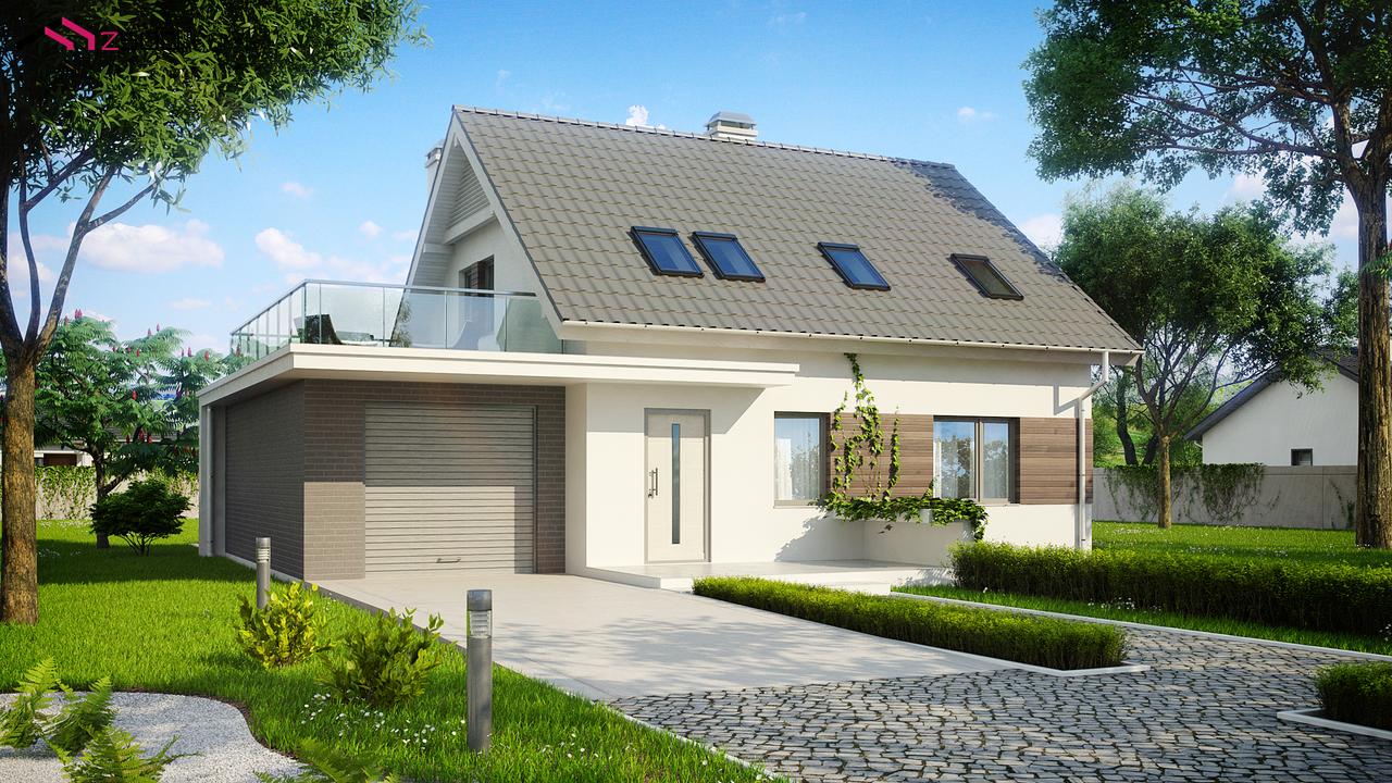 Проект Z23— это удобный дом с эркером, балконом и террасой над гаражом. Практичный уютный интерьер, традиционное элегантное оформление фасадов привлекут внимание многих застройщиков.