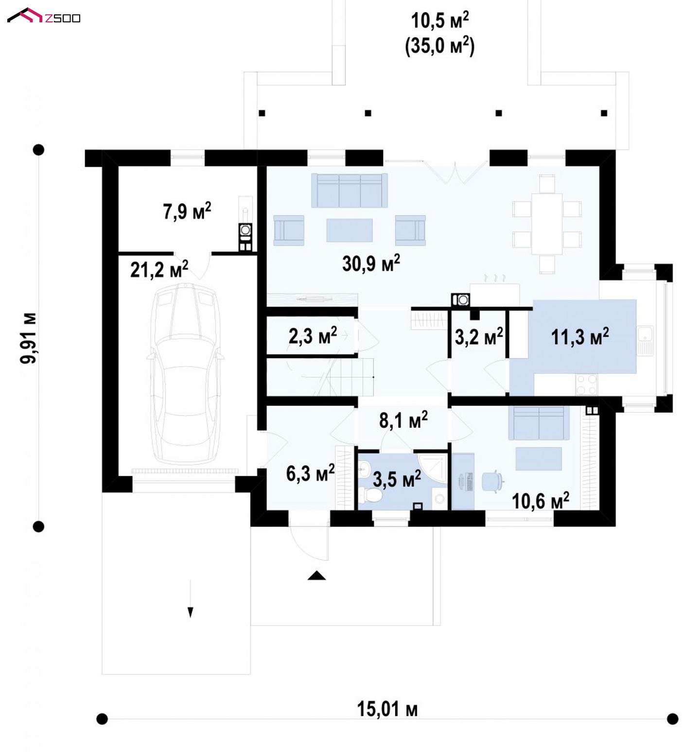 • Прямой переход из гаража в дом упростит разгрузку и погрузку вещей в машину.