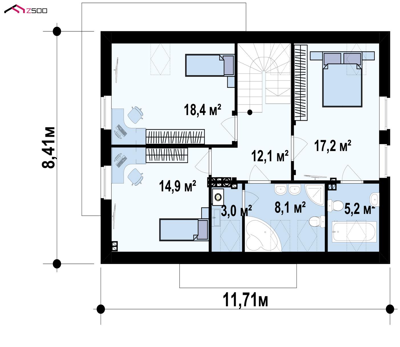 Z244 представляет собой проект простого и аккуратного дома с дополнительной ночной зоной на первом этаже. Традиционная архитектура