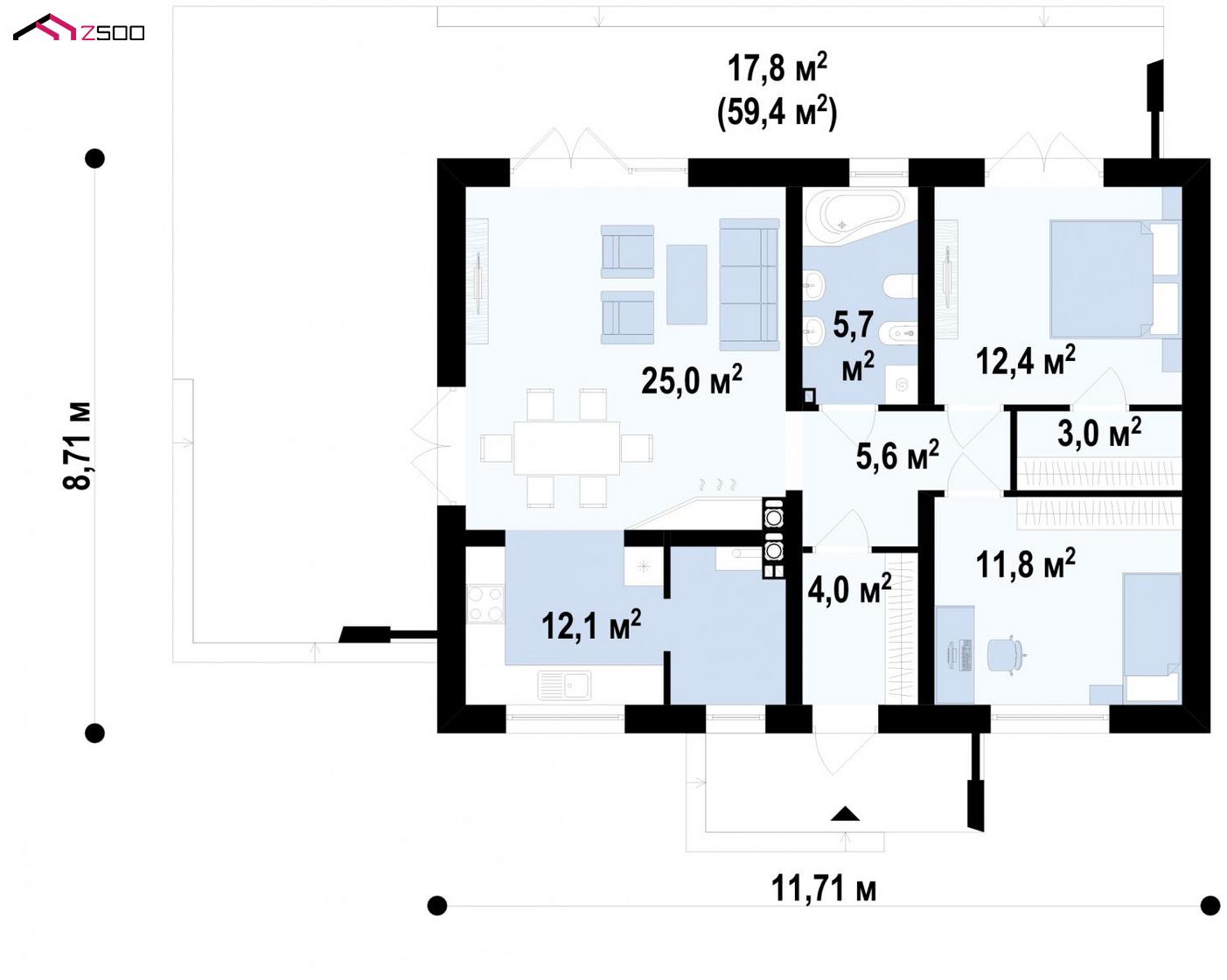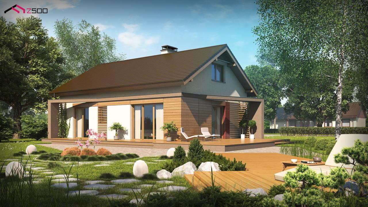 Z255 a – небольшой одноэтажный дом с оригинальным оформлением террас.