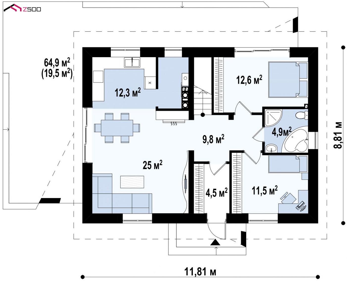 Проект Z255 – хороший вариант дачного дома или дома для небольшой семьи. Строить по проекту можно на узком участке. Современный дизайн в сочетании с традиционной архитектурой делают проект привлекательным для застройщиков разных возрастных групп.