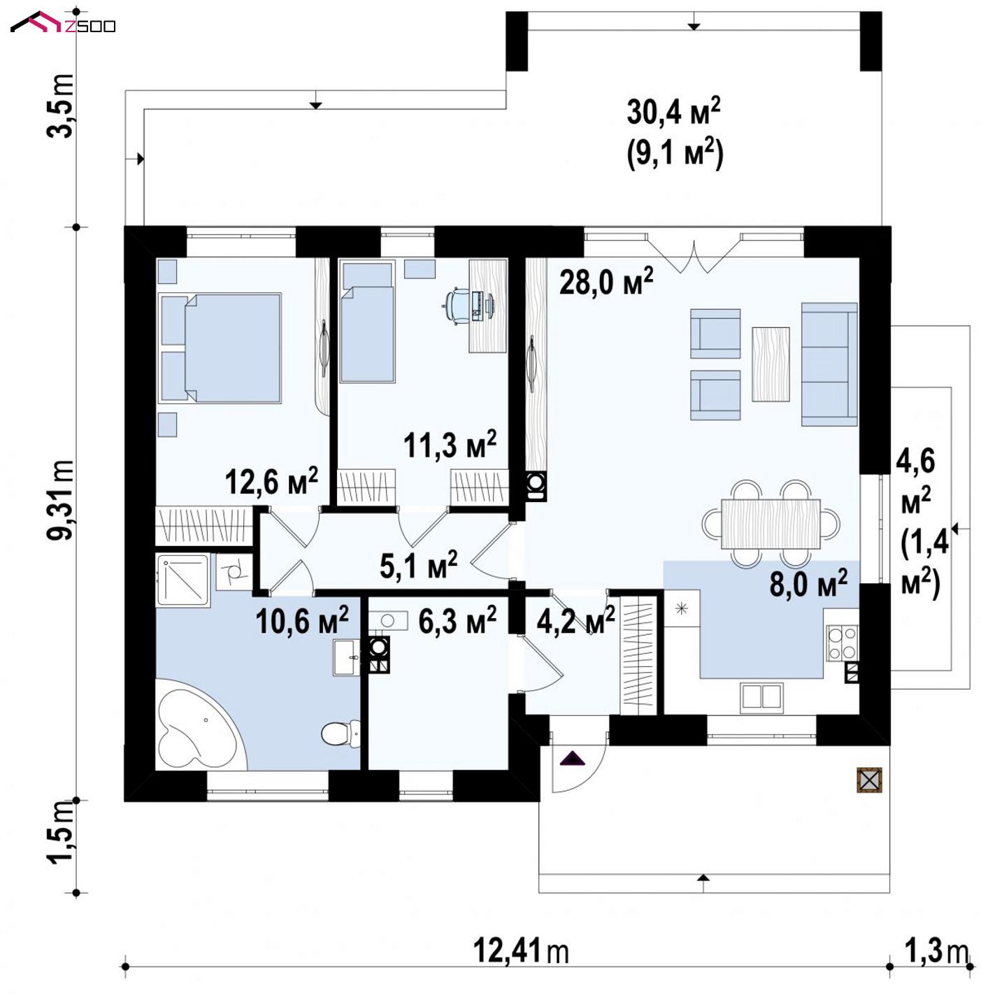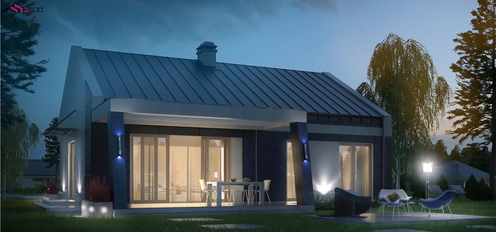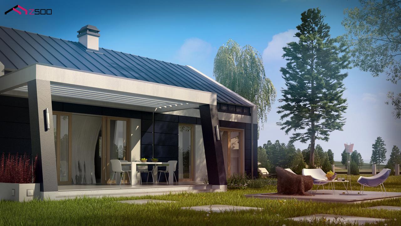 Z256 — компактный одноэтажный дом современного дизайна с необычным оформлением террасы.
