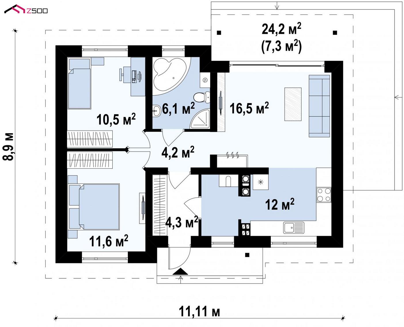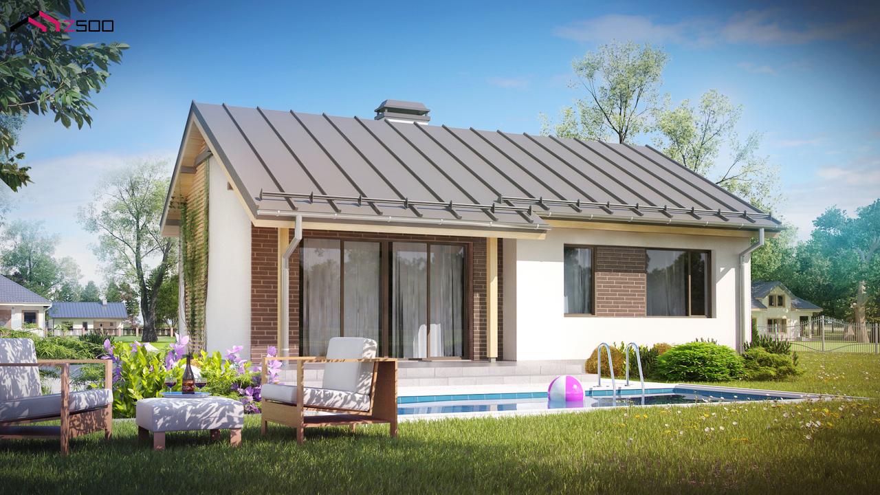 Z262 представляет постой и недорогой в строительстве одноэтажный дом небольшой площади. Привлекательный внешний вид и продуманная