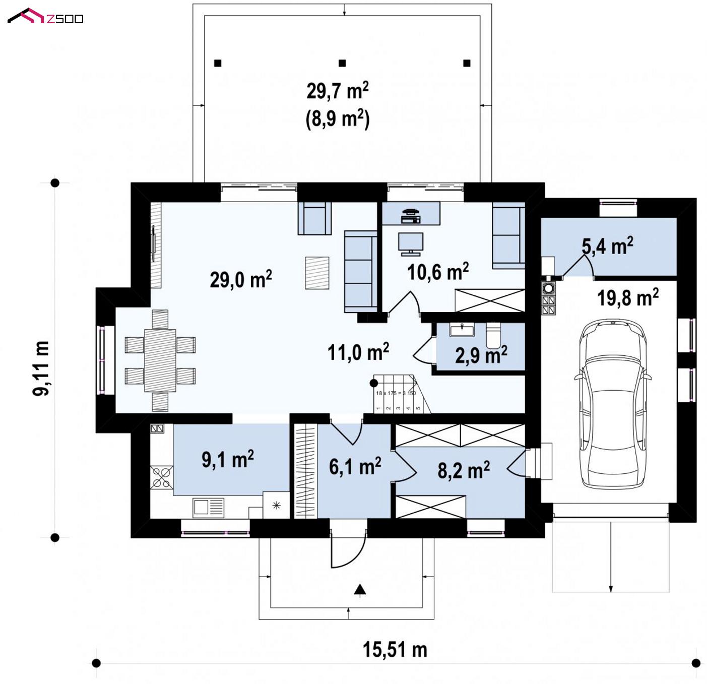 Z263 + представляет собой версию мансардного дома Z263 с увеличением гаража.