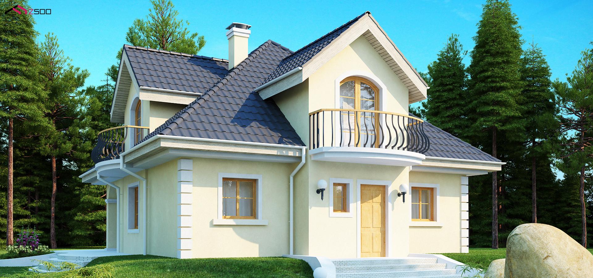 с мансардой, с красивыми мансардными окнами и балконами. Дополнительным