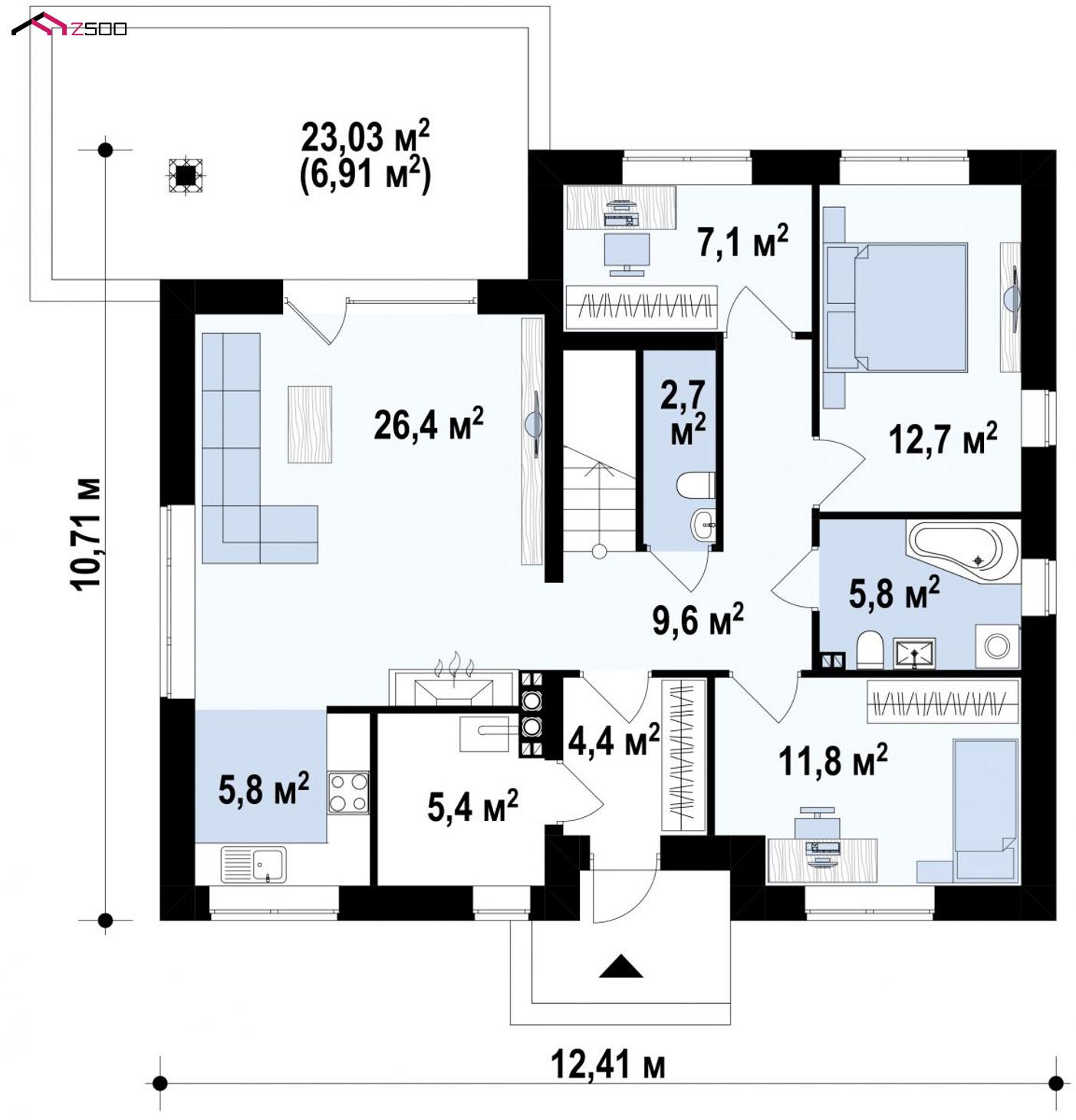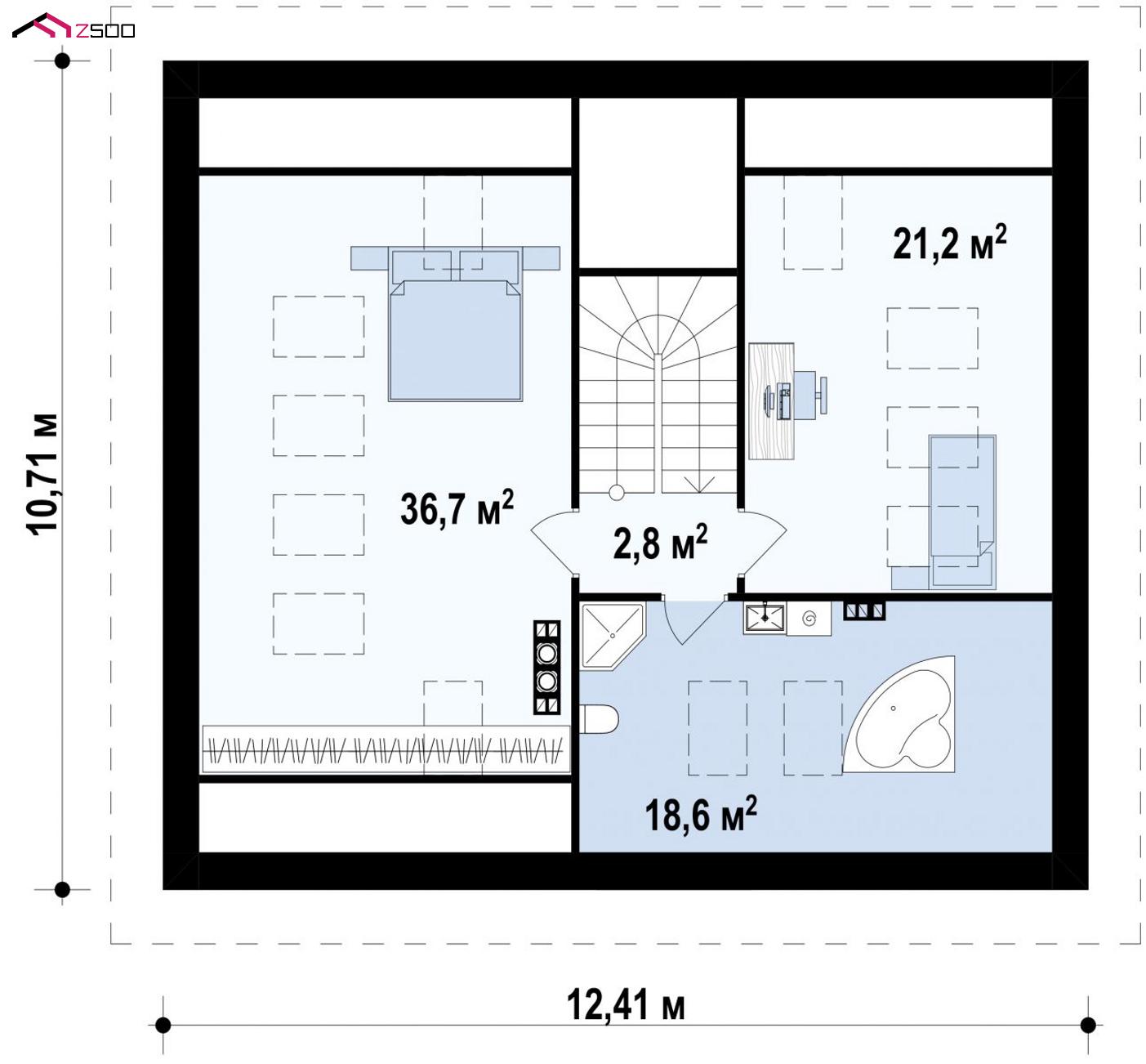 Версия проекта Z273 с жилой мансардой, с увеличенной высотой аттиковой стены.
