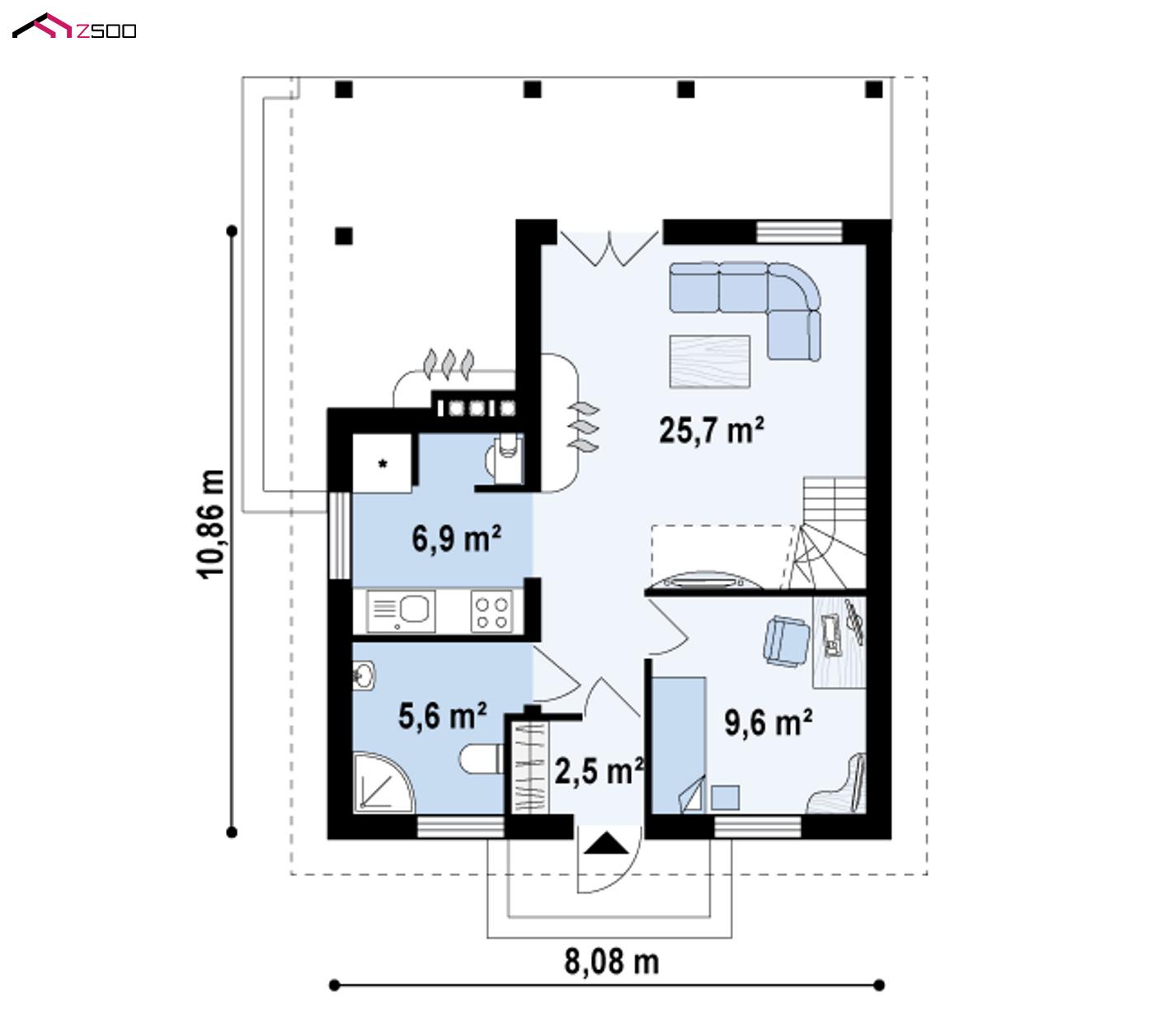 площади гостиной можно отказаться от дополнительной комнаты на первом этаже,
