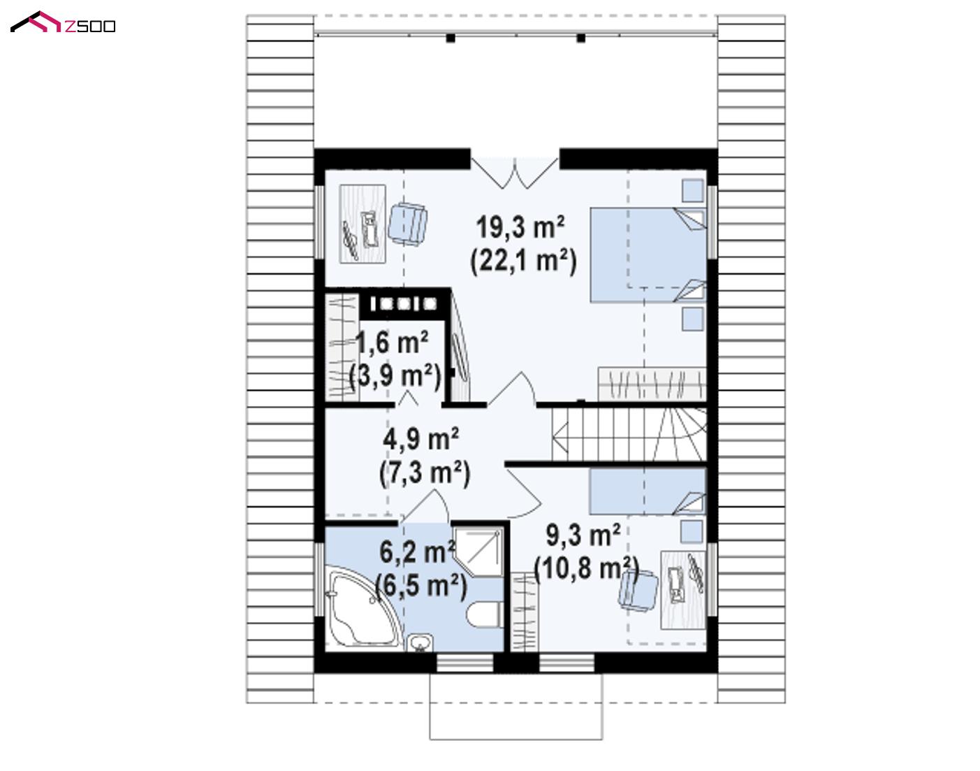 Компактный дом с мансардой, с крытой террасой и внешним камином.