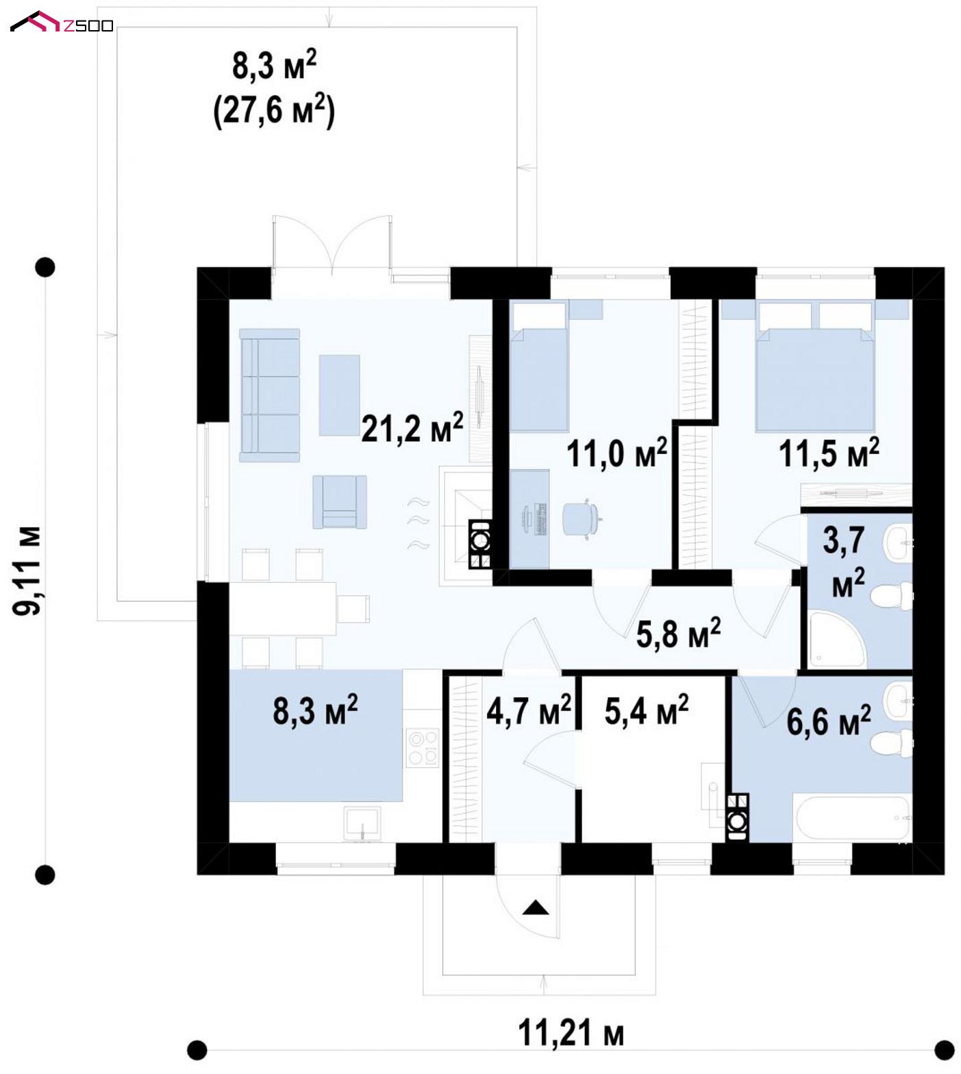 Проект Z308 предназначен для проживания небольшой семьи, которая ценит удобство и уют.