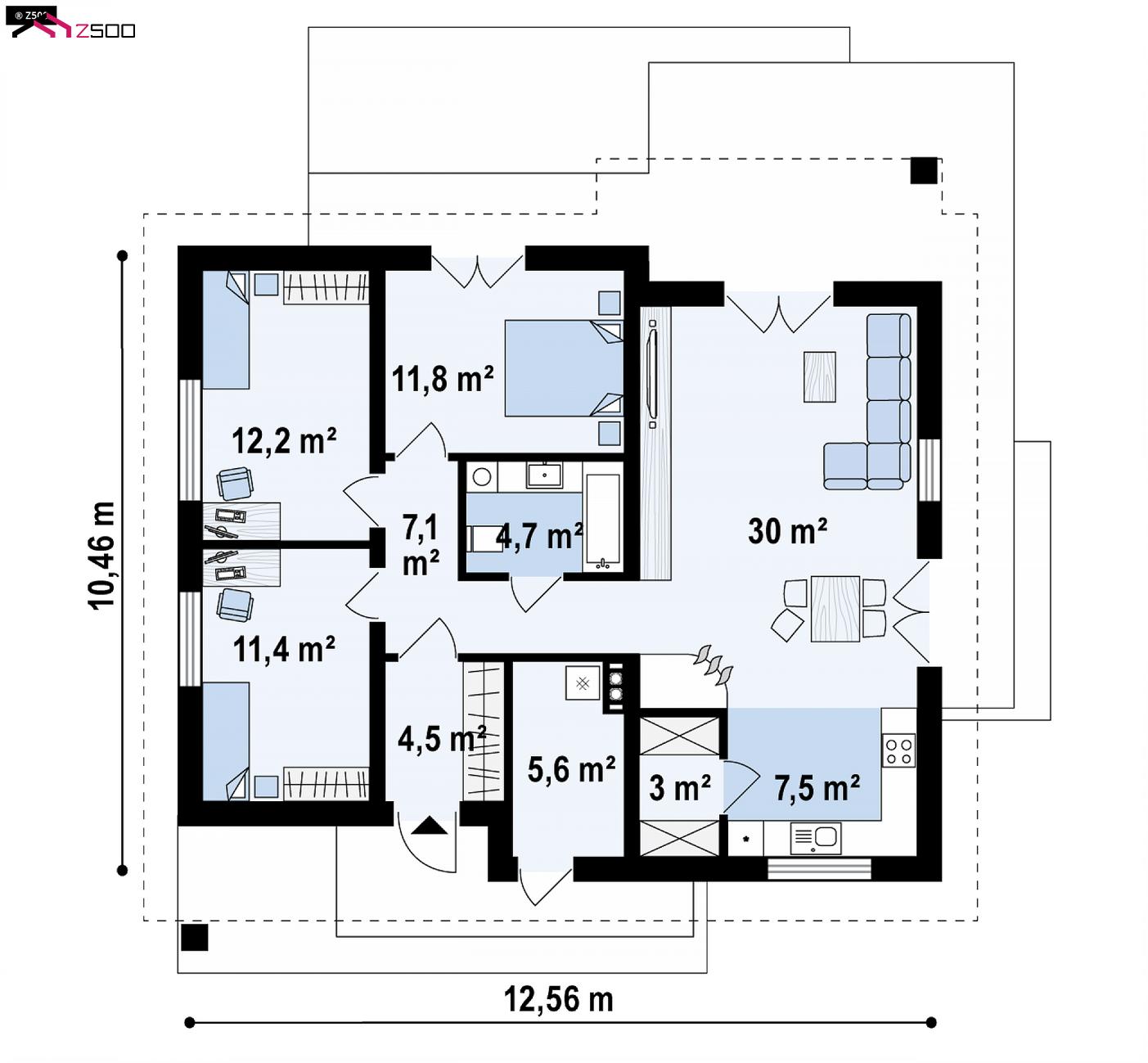 Вариант проекта Z316 с измененной планировкой помещений и двускатной кровлей
