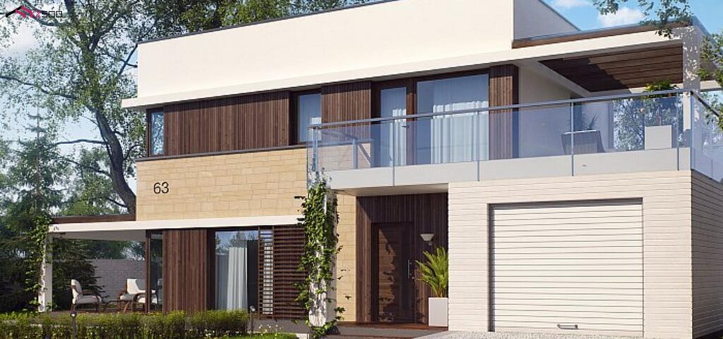 современном европейском стиле, с панорамным остеклением и террасой на втором