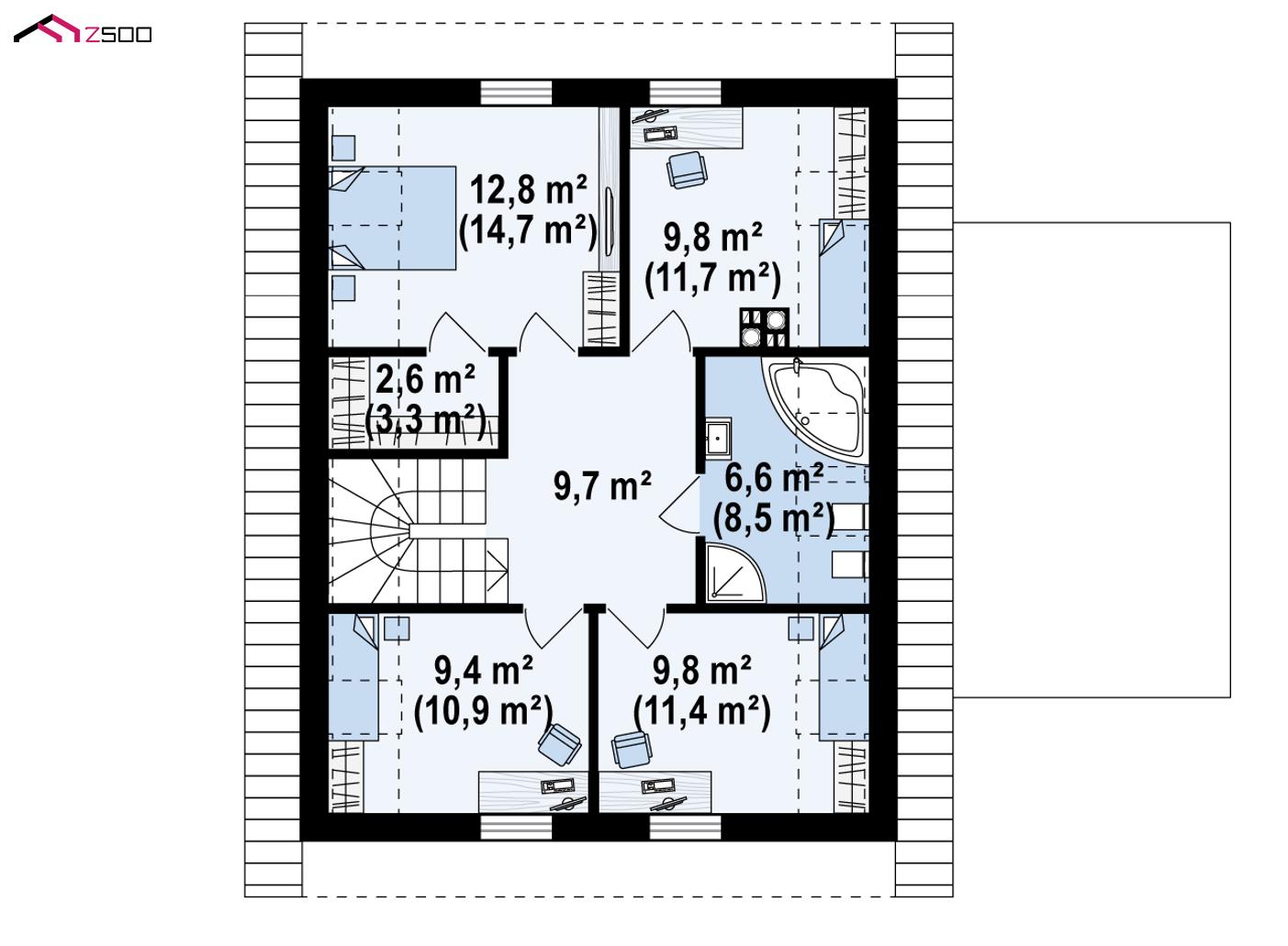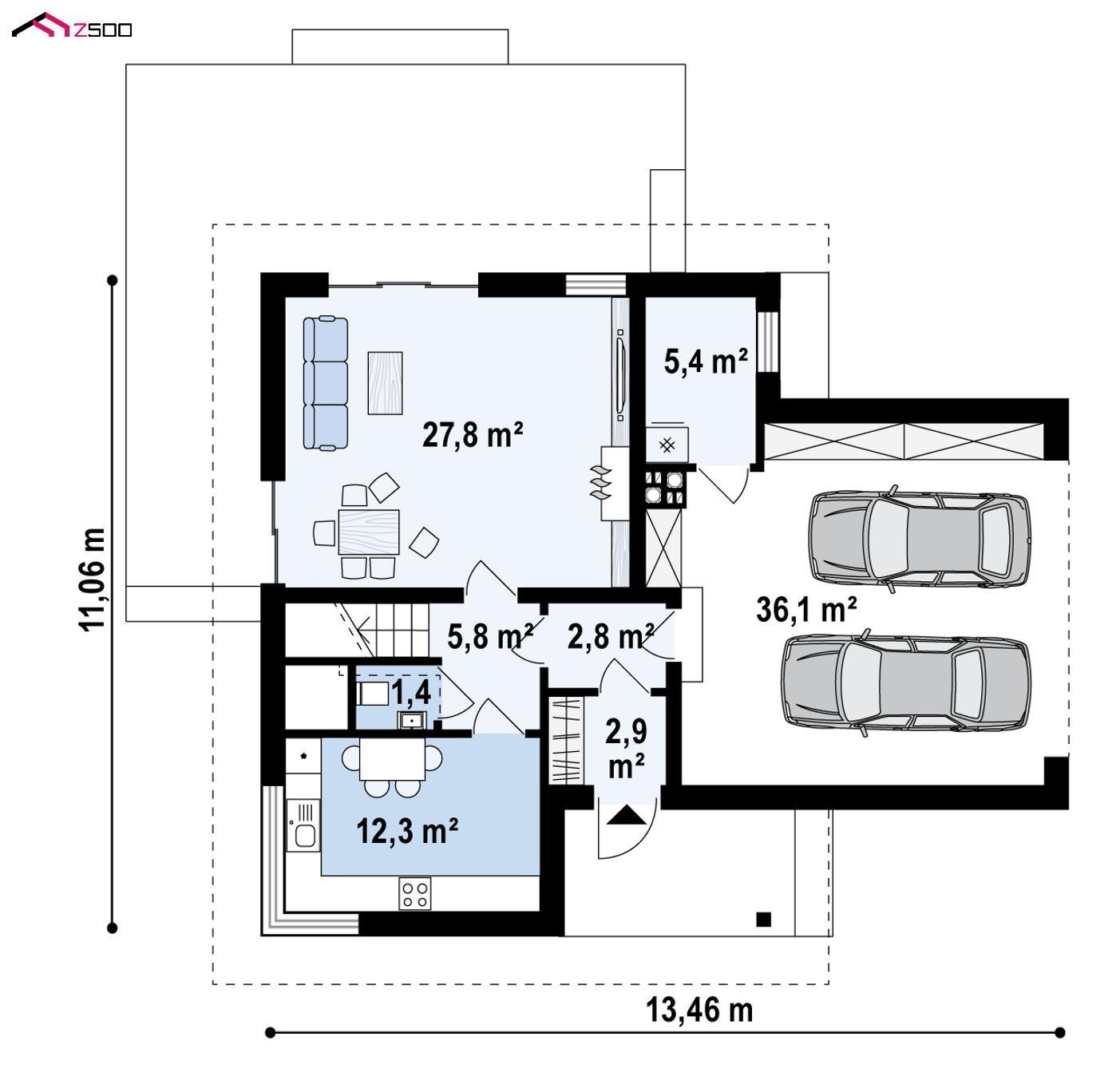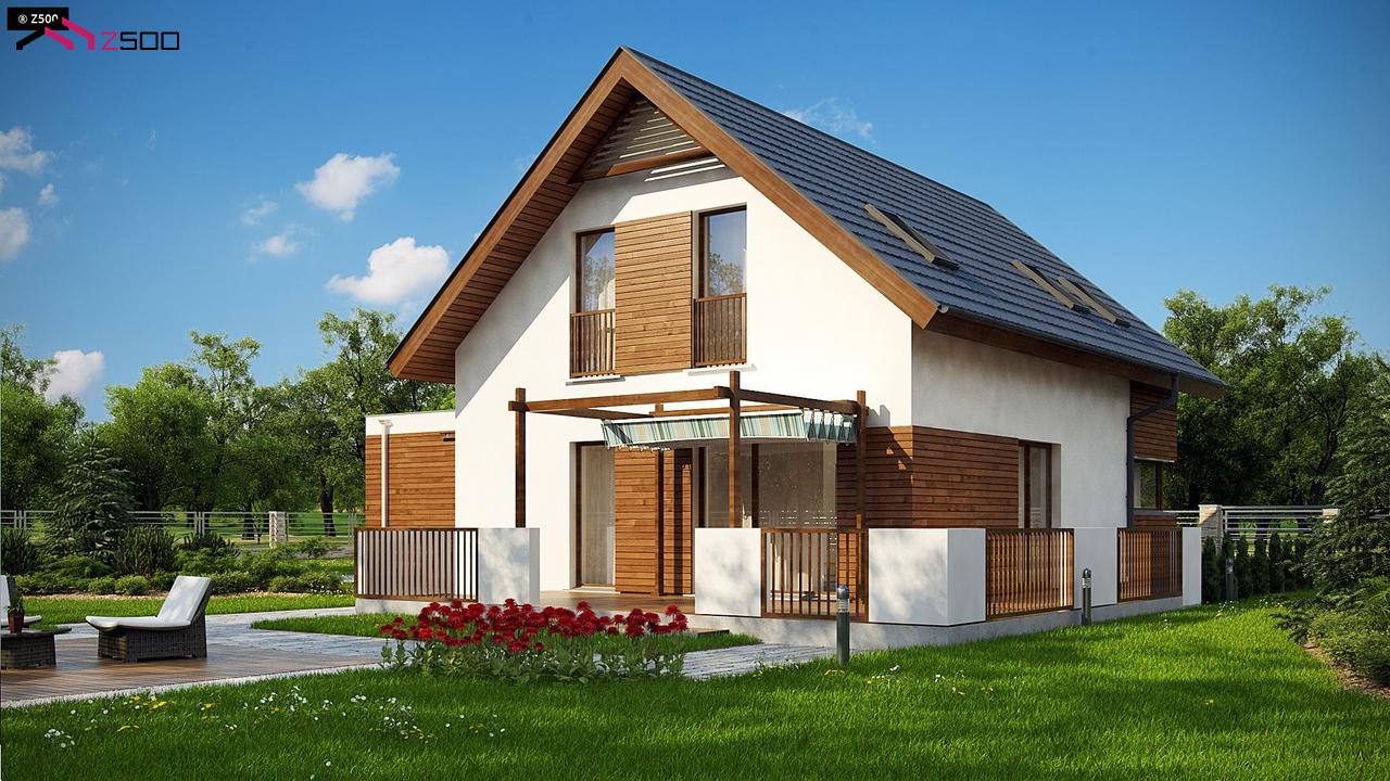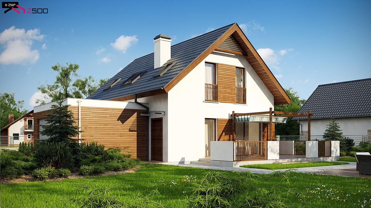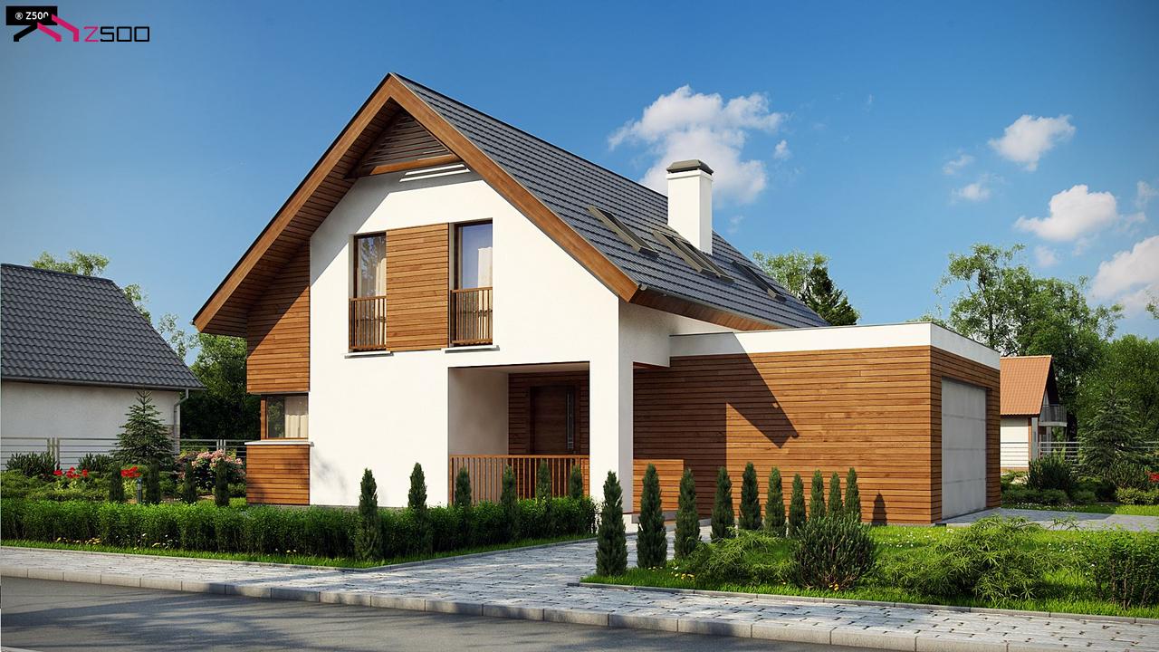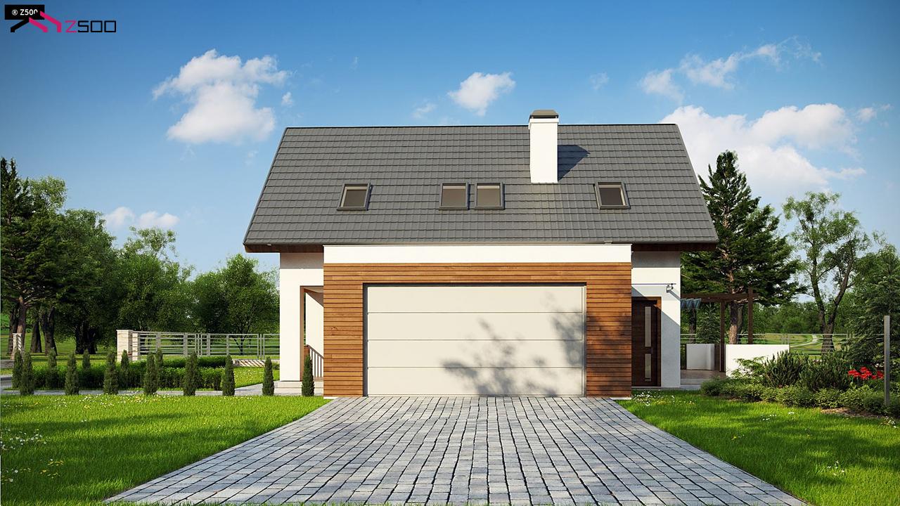Z350 представляет собой стильный мансардный дом с гаражом на две машины, предназначенный для комфортного проживания большой семьи.