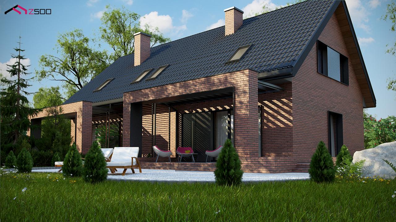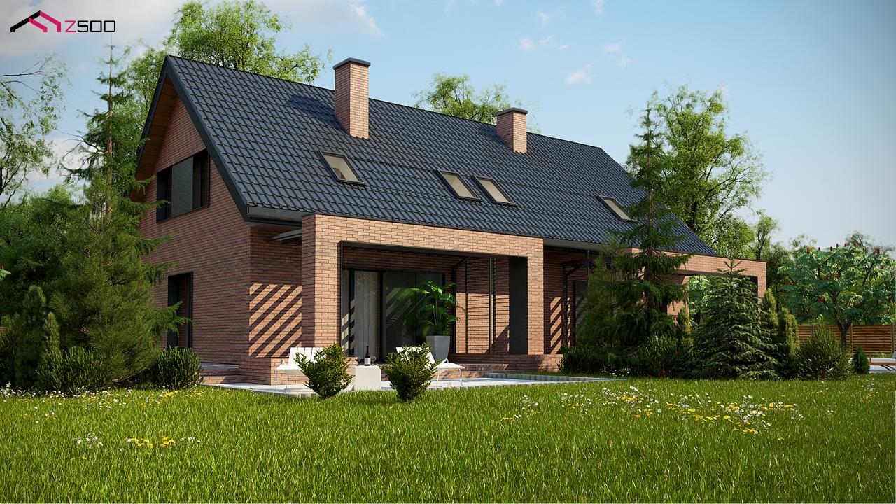 Проект Z351 представляет собой стильный мансардный дом с двускатной кровлей.