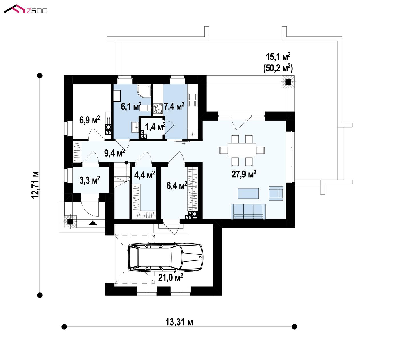 Проект Z365 придется по вкусу сторонникам современных домов с функциональной грамотной планировкой и оригинальным обликом. Такой дом гармонично смотрится как в плотно городской застройке, так на большом загородном участке.