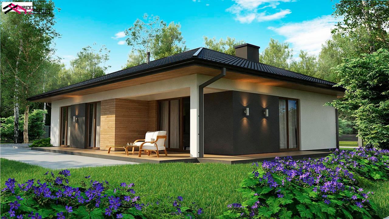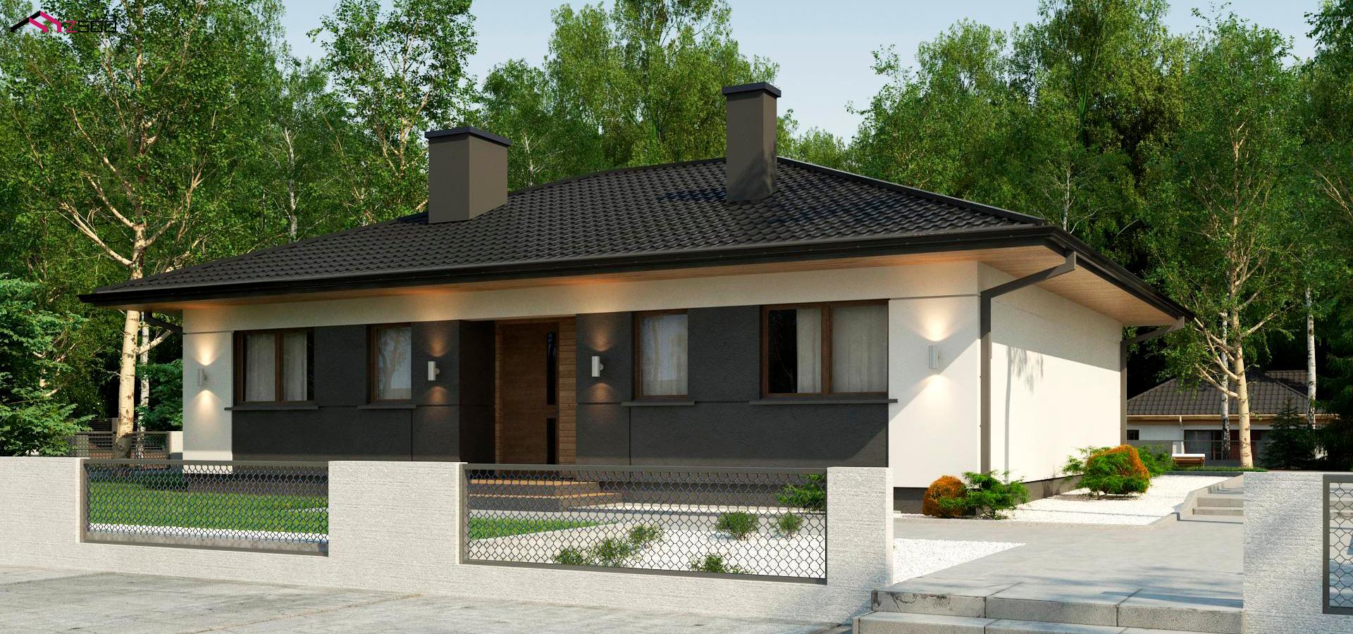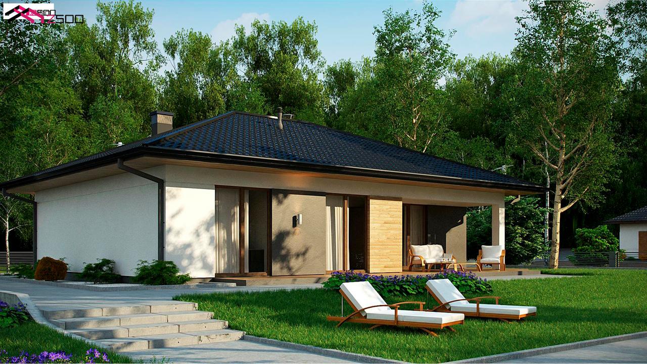 Z368 D S аккуратный одноэтажный дом в традиционном стиле с функциональным интерьером. Современный внешний вид делает проект актуальным для реализации как загородом, так и в городском ландшафте.