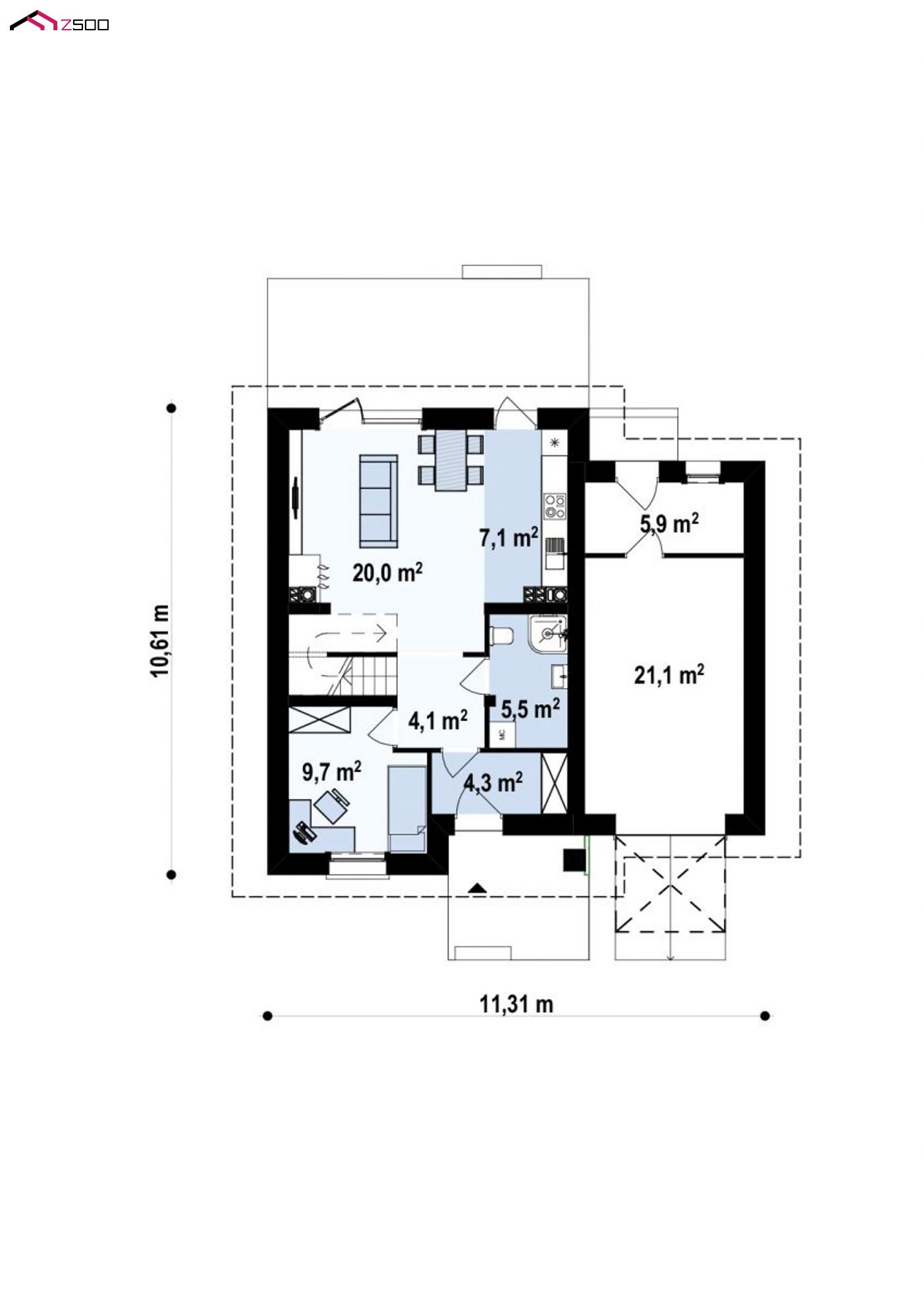Проект Z38 D GP предназначен для тех, кто ищет экономичный в строительстве дом с функциональной планировкой.