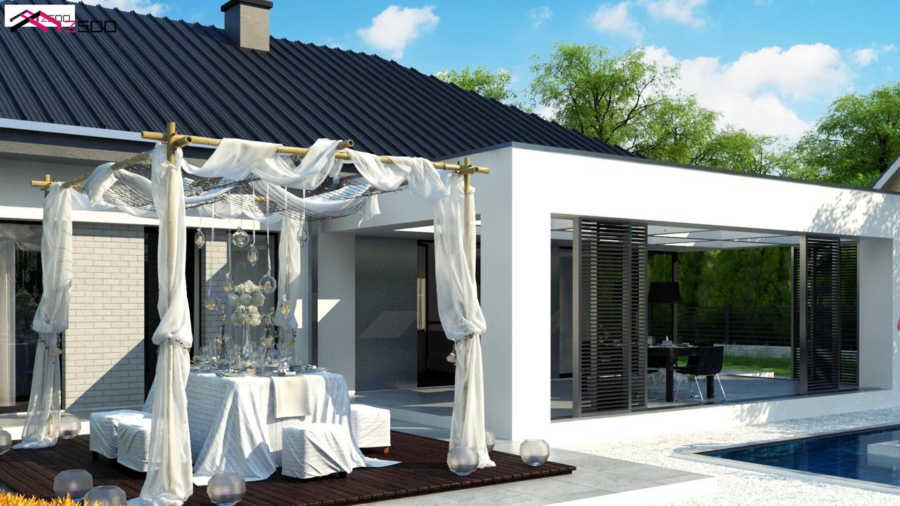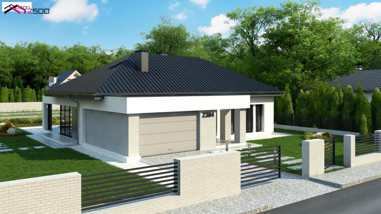 Z384 представляет собой компактный одноэтажный коттедж с гаражом для одной машины.