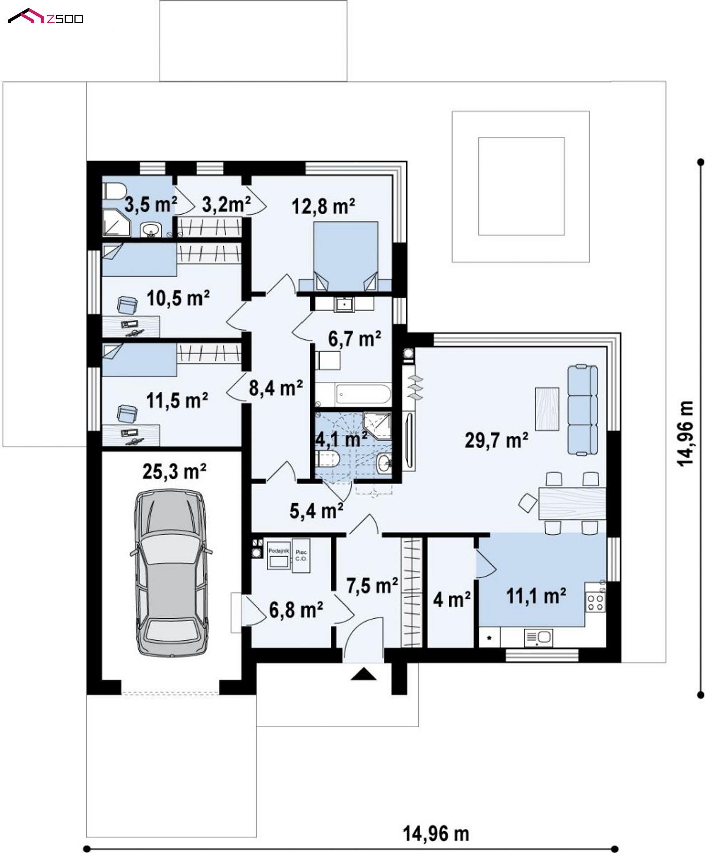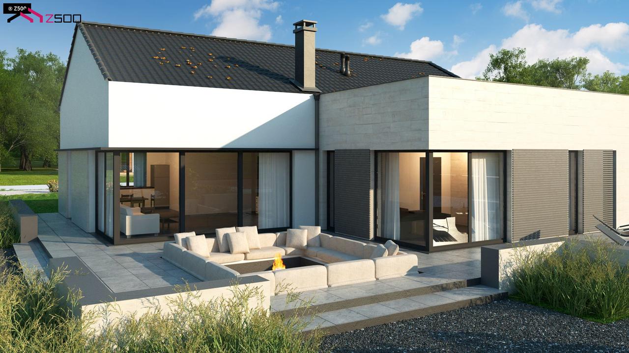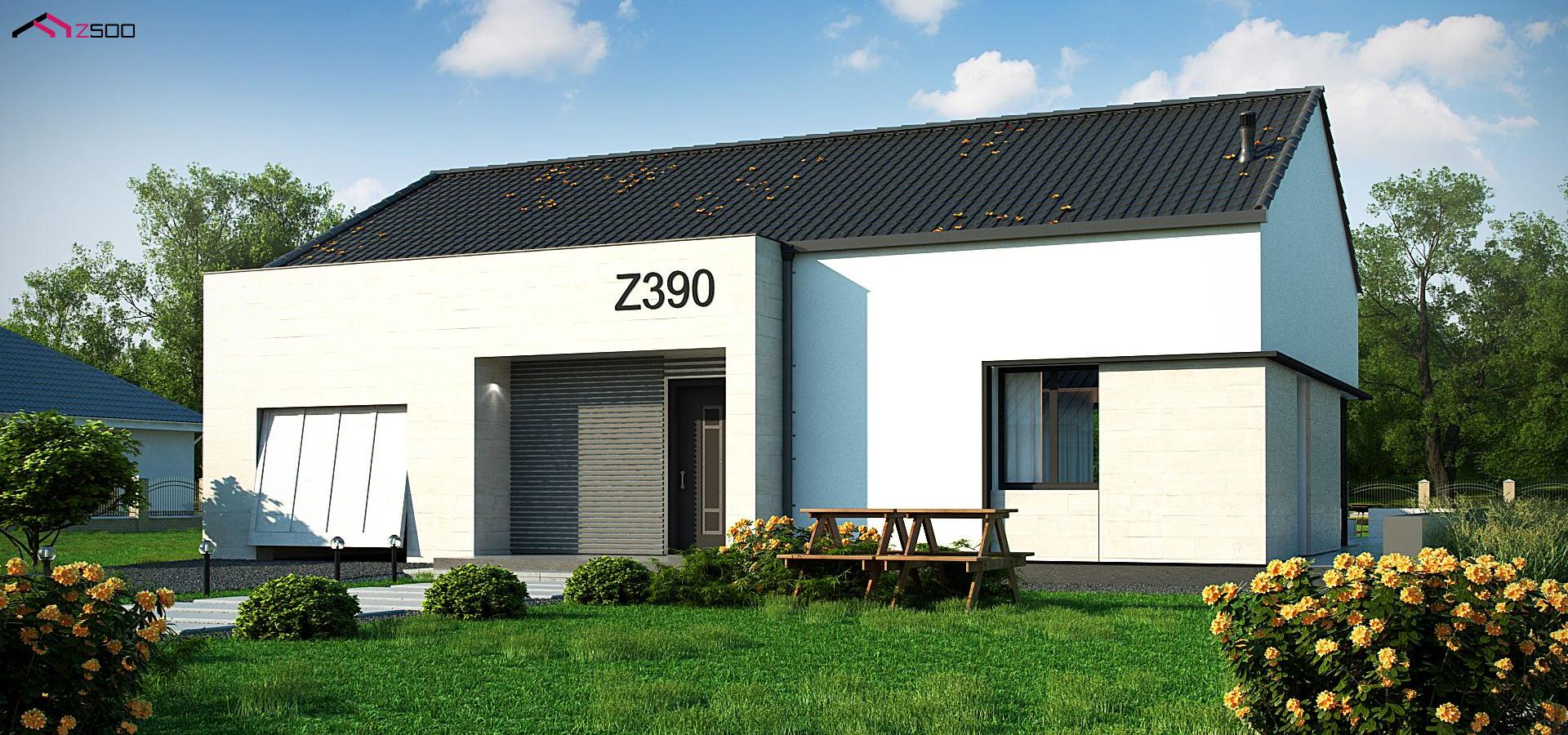Z390 представляет собой проект одноэтажного дома с гаражом на 1 машину и красивым белым фасадом, выполненный в современном европейском стиле. Такой дом комфортен для проживания семей с 2-3 детишками.