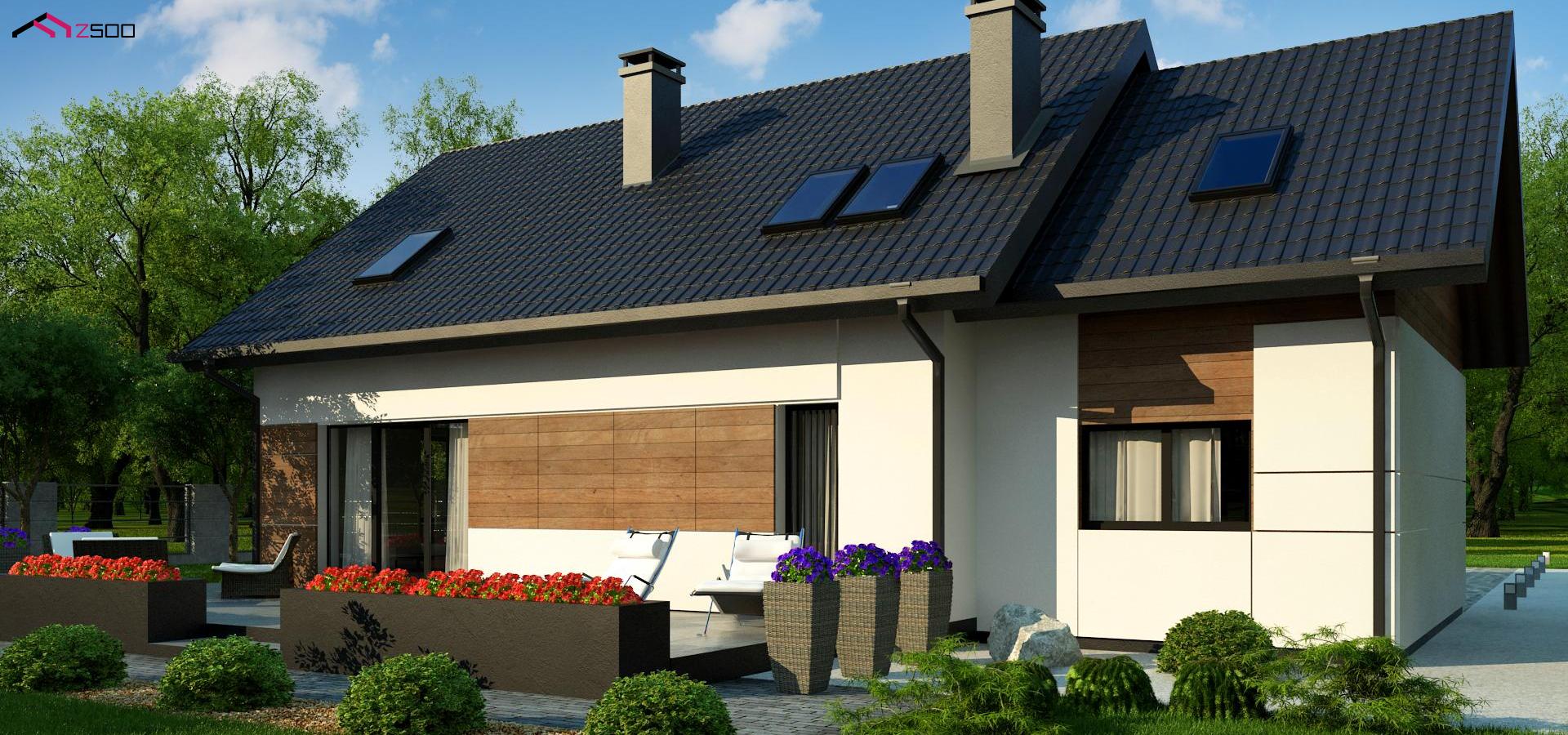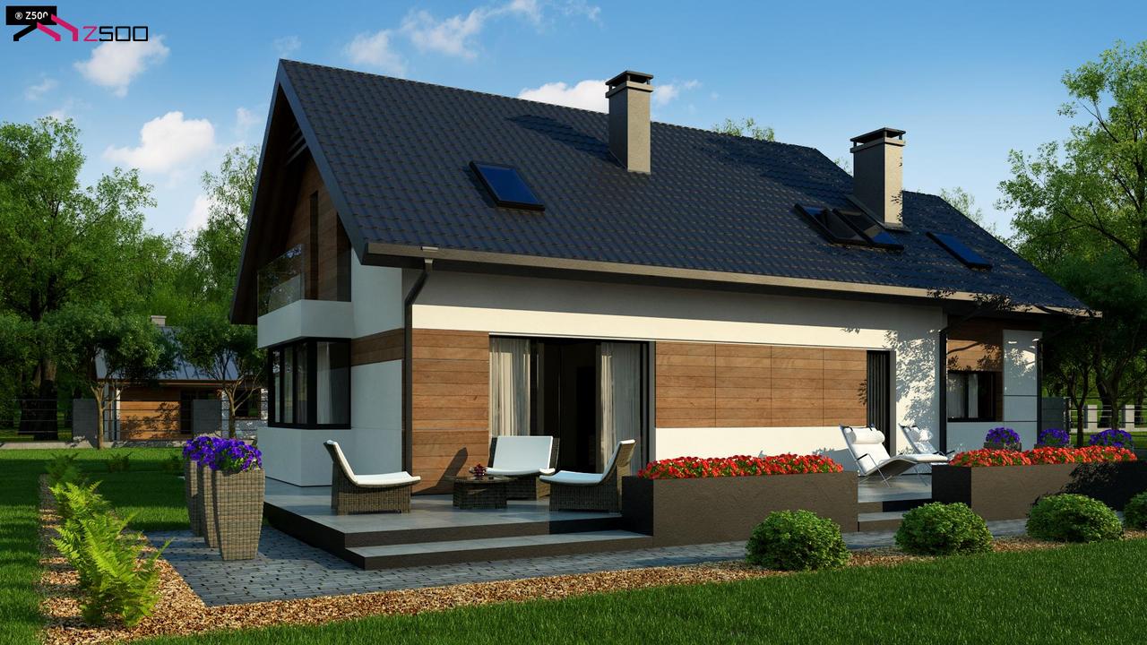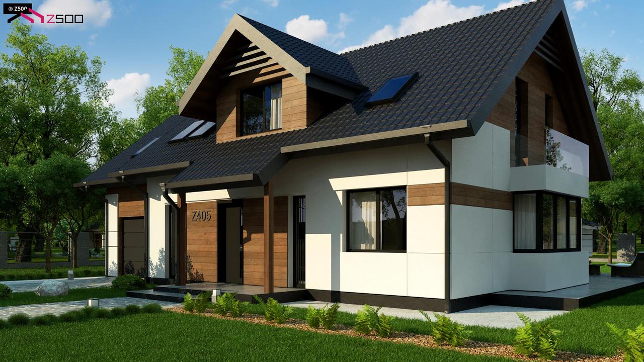 - Интересная форма кровли с люкарнами, белая штукатурка в сочетании