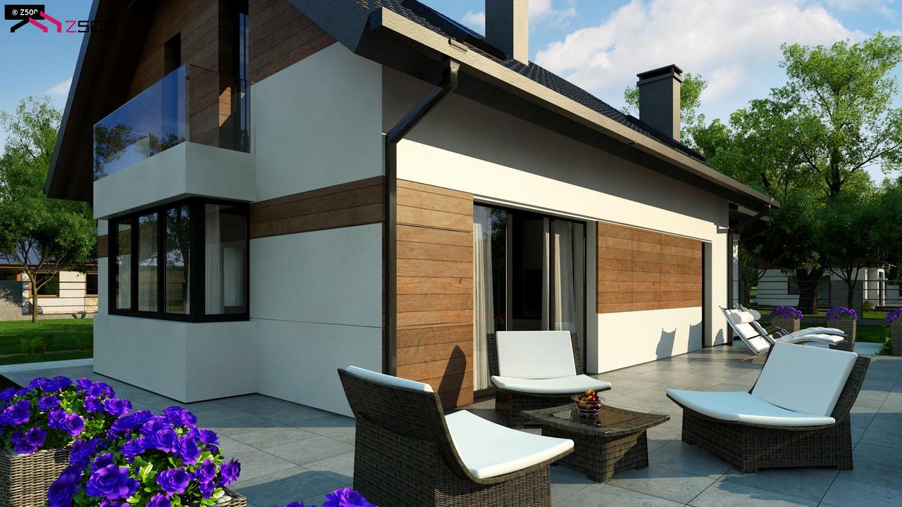 с элементами дерева теплых оттенков делают экстерьер дома эффектным и