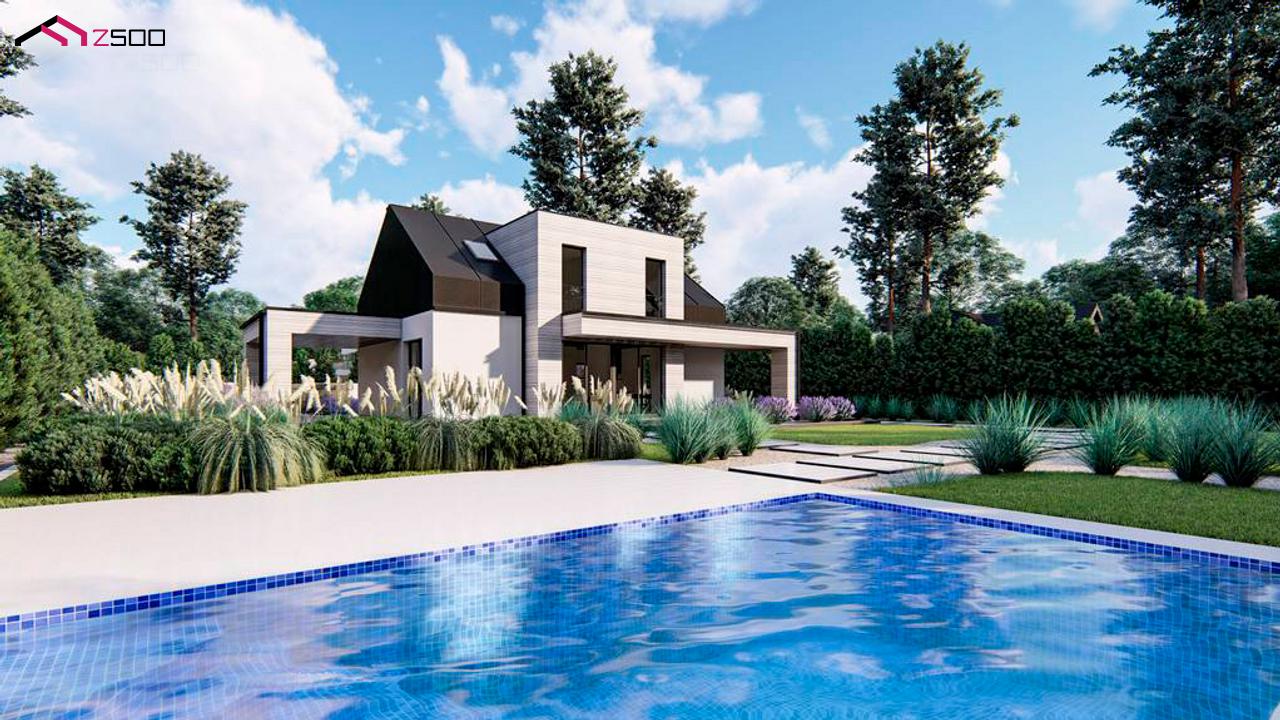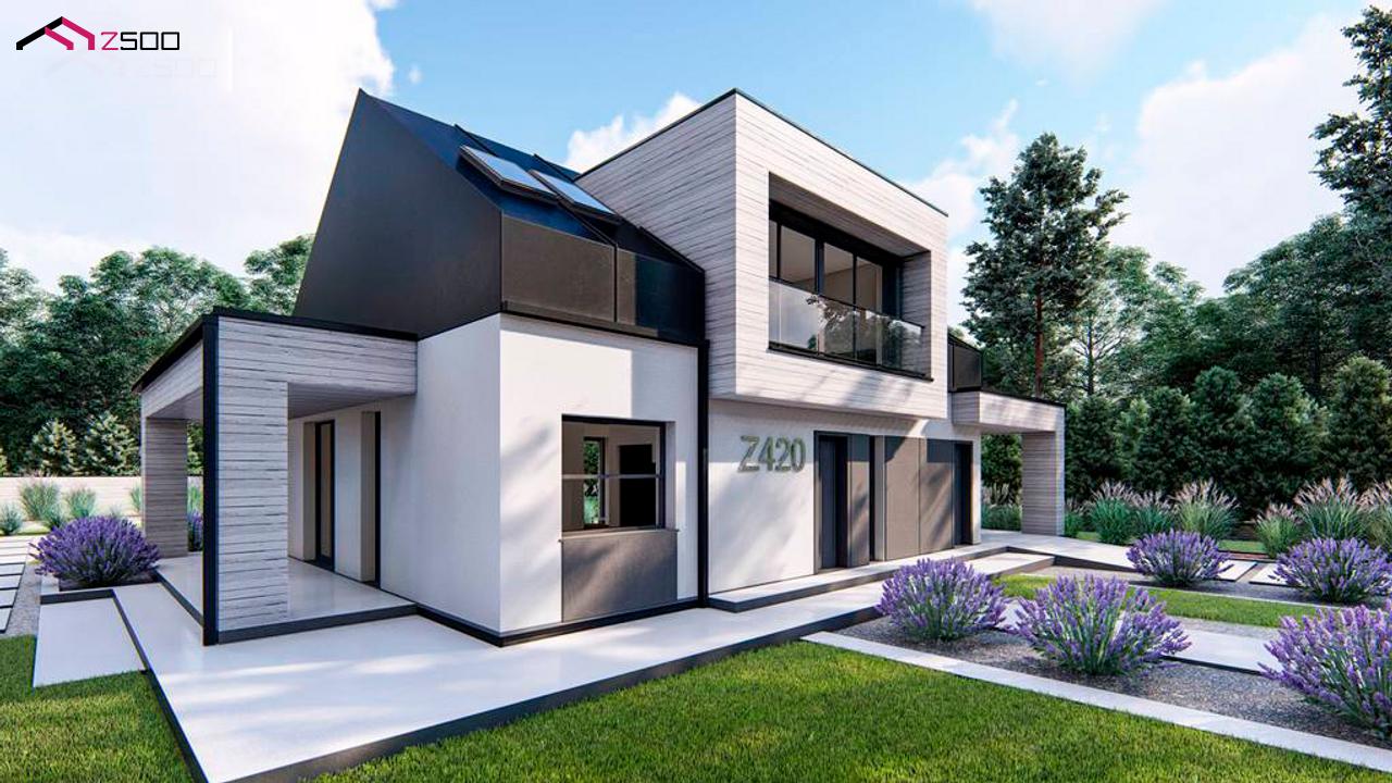 Проект Z420, несомненно, отличается оригинальной архитектурой и планировкой. Такой дом прекрасно вольется как в загородный, так и городской ландшафт.