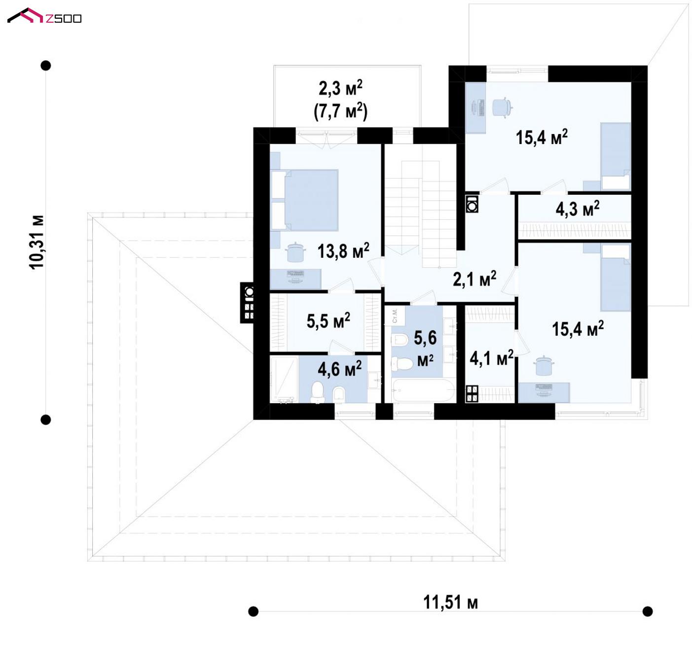 Вариант двухэтажного дома Z426 с многоскатной крышей