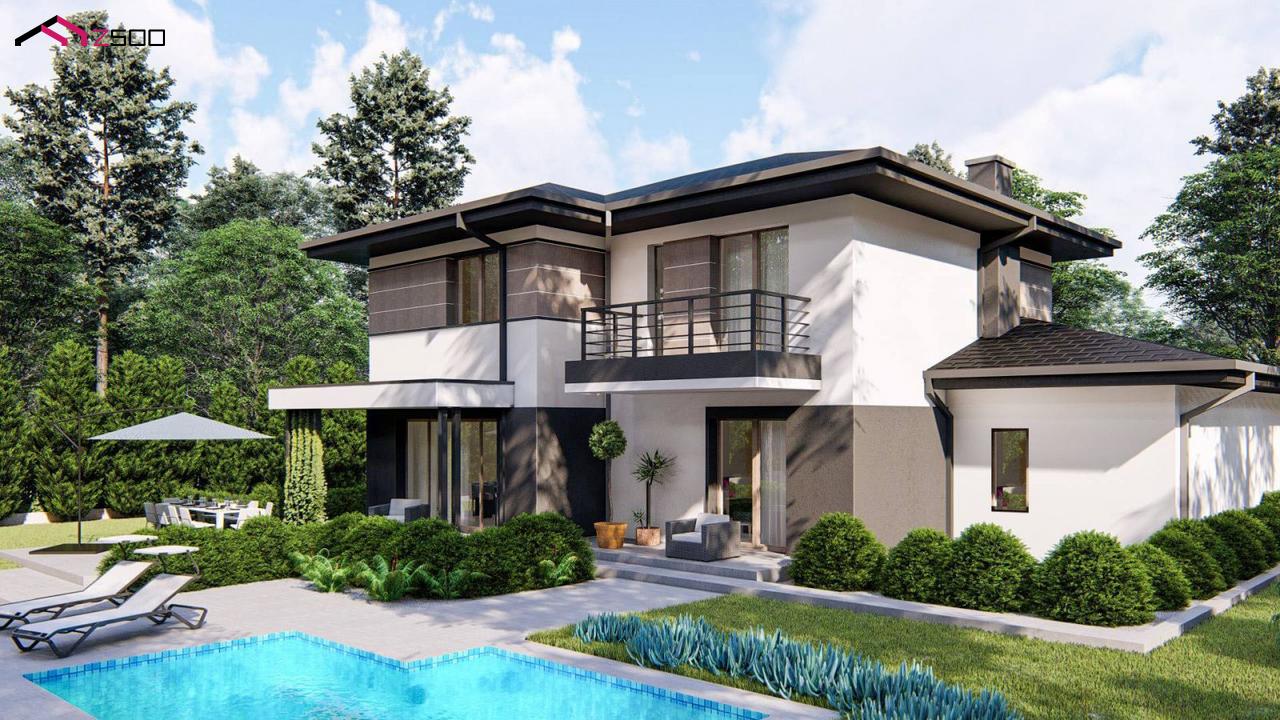 Z426 v1 представляет собой вариант двухэтажного дома Z426 с многоскатной крышей.
