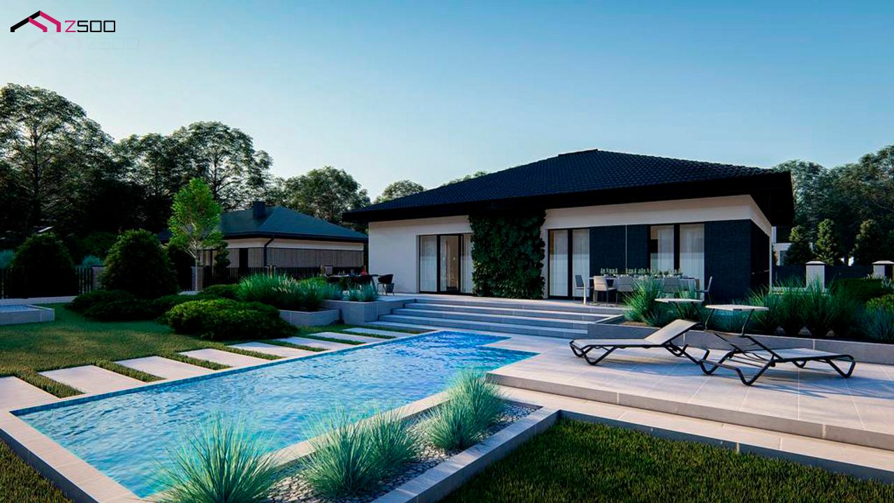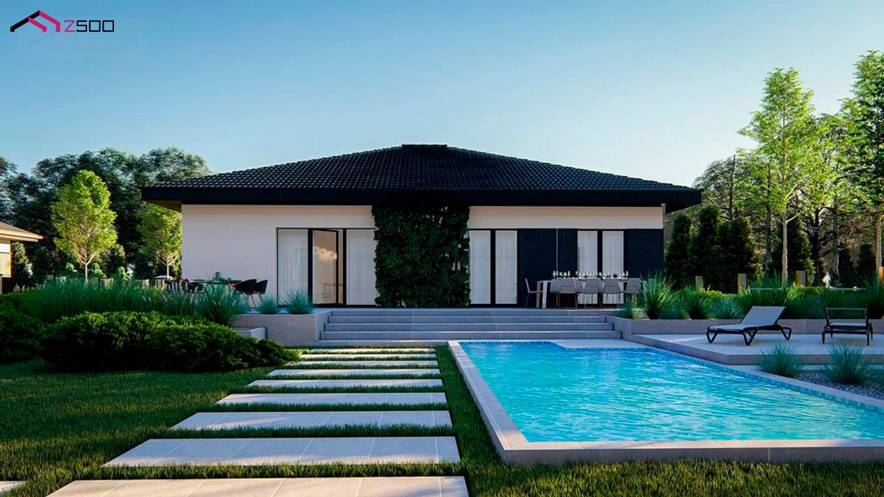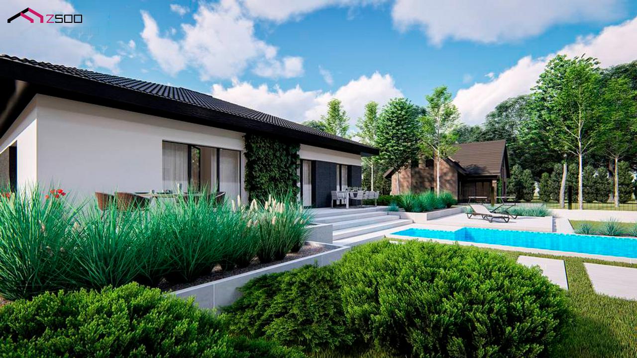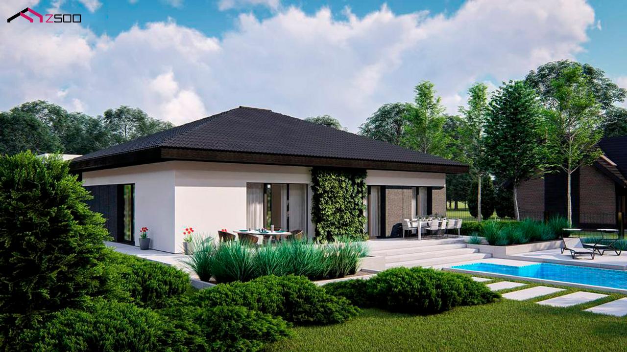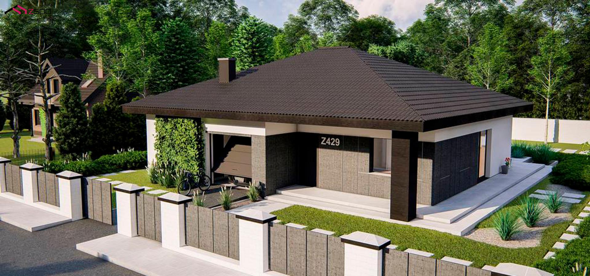 Z429 представляет собой функциональный одноэтажный дом с гаражом на одну машину, расположенный в центральной части.