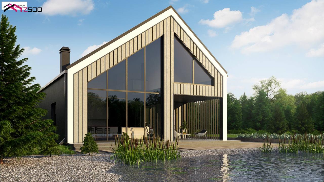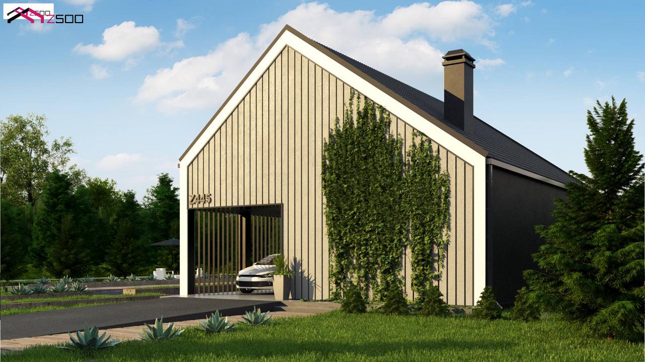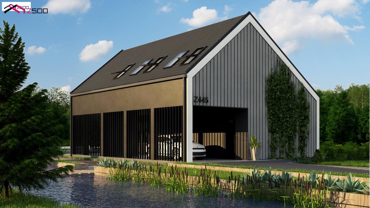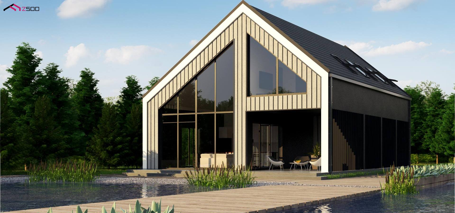 Z445D представляет собой мансардный дом простой формы с современным оригинальным экстерьером.