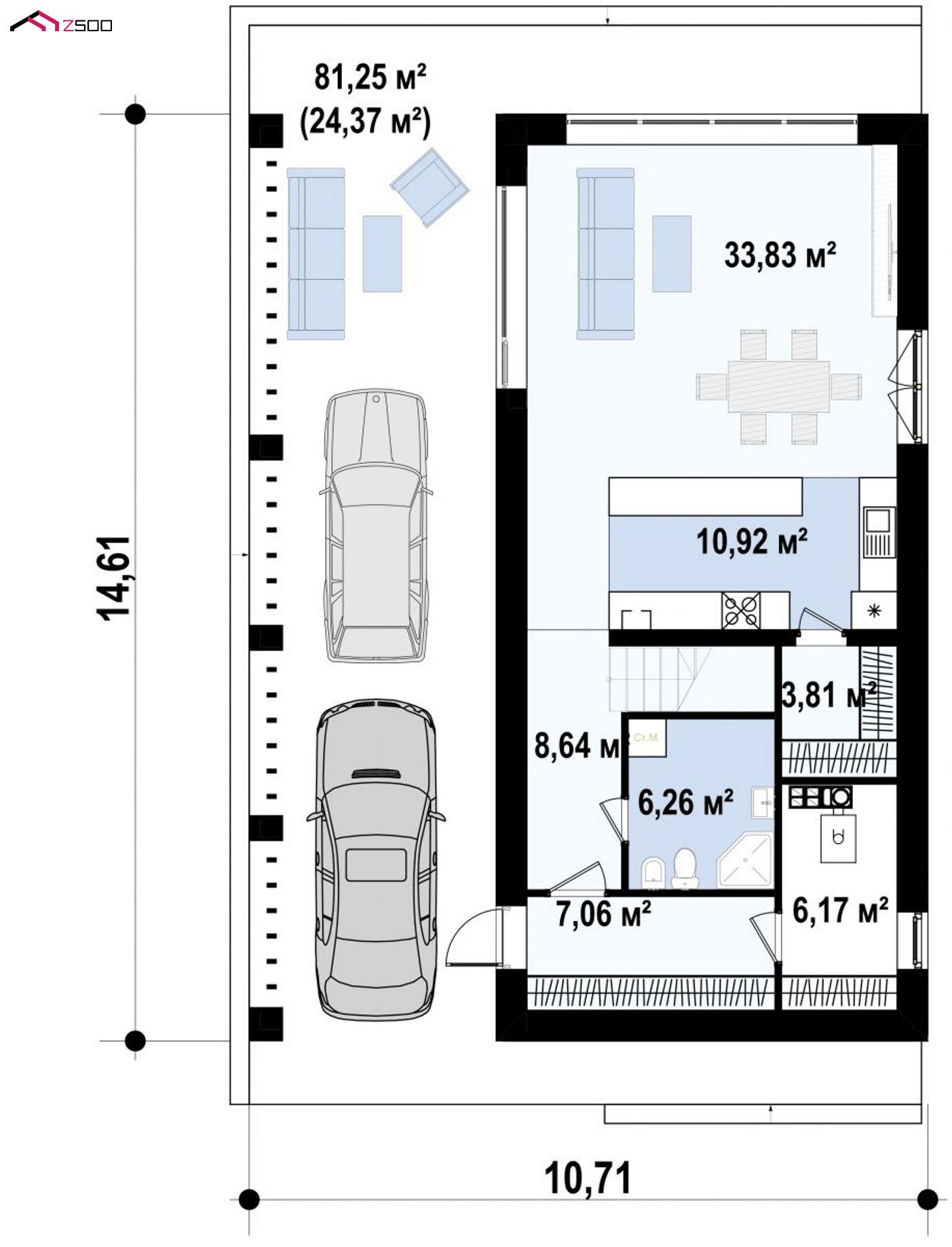 Проект Z445D пригоден для реализации на узком участке и гармонично вливается как городской, так и загородный пейзаж.